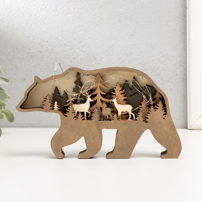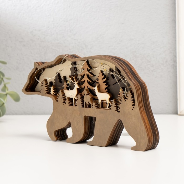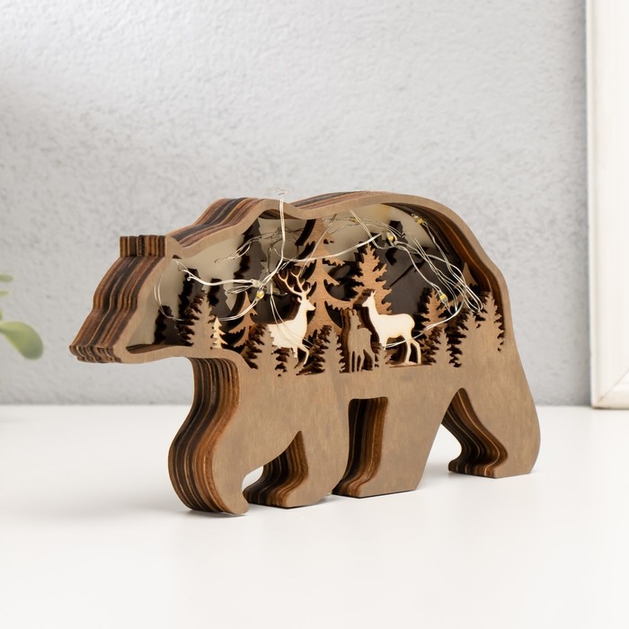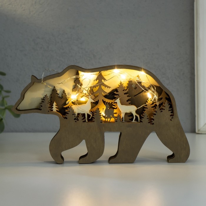 Сувенир дерево свет "Бурый медведь" 18х10 см