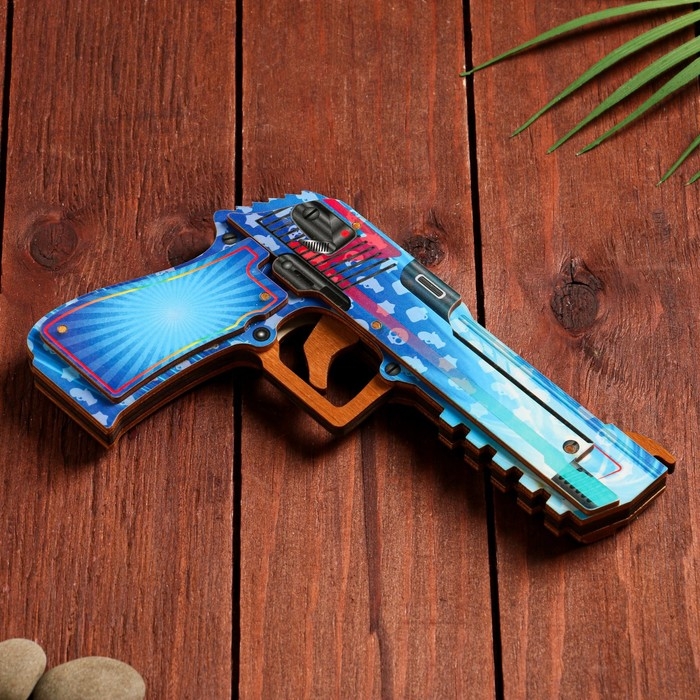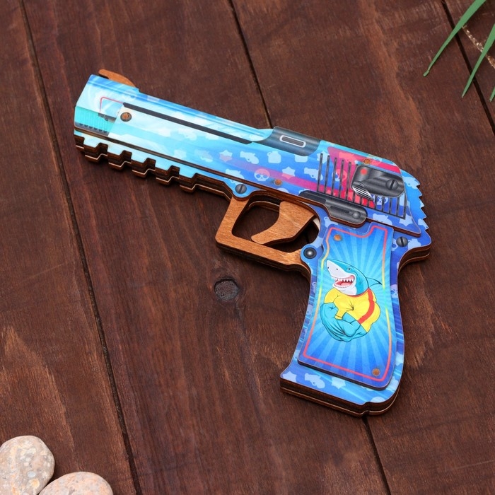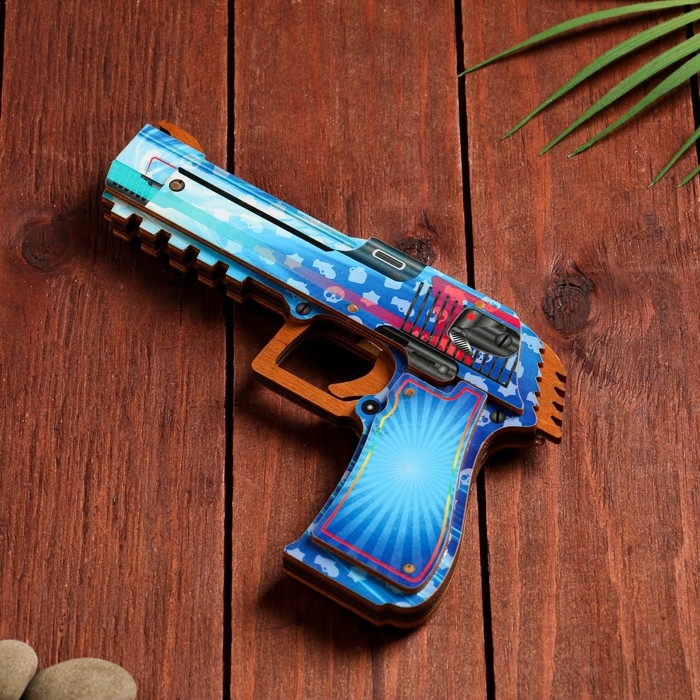 Сувенир деревянный "Пистолет-резинкострел" голубой
