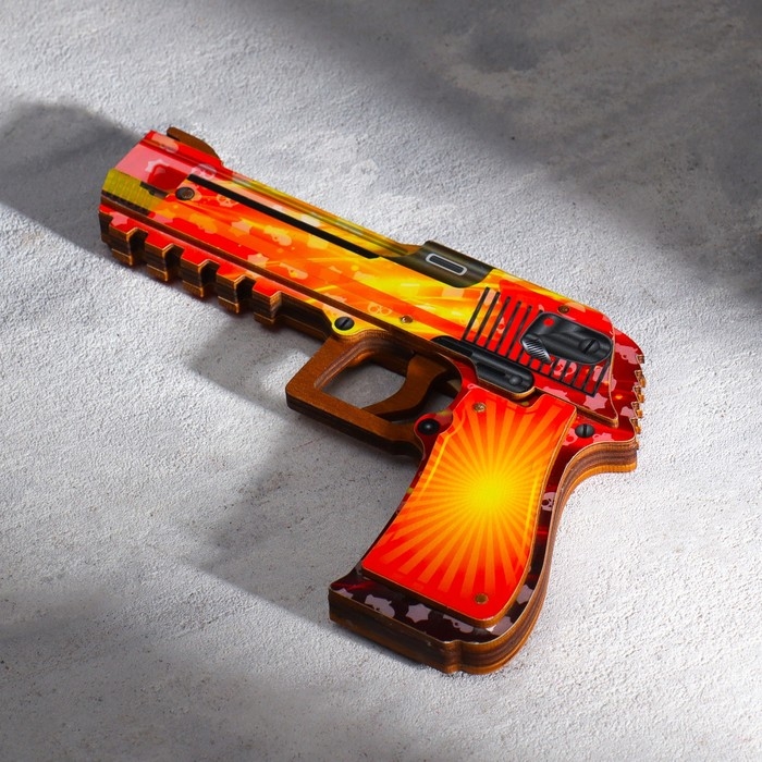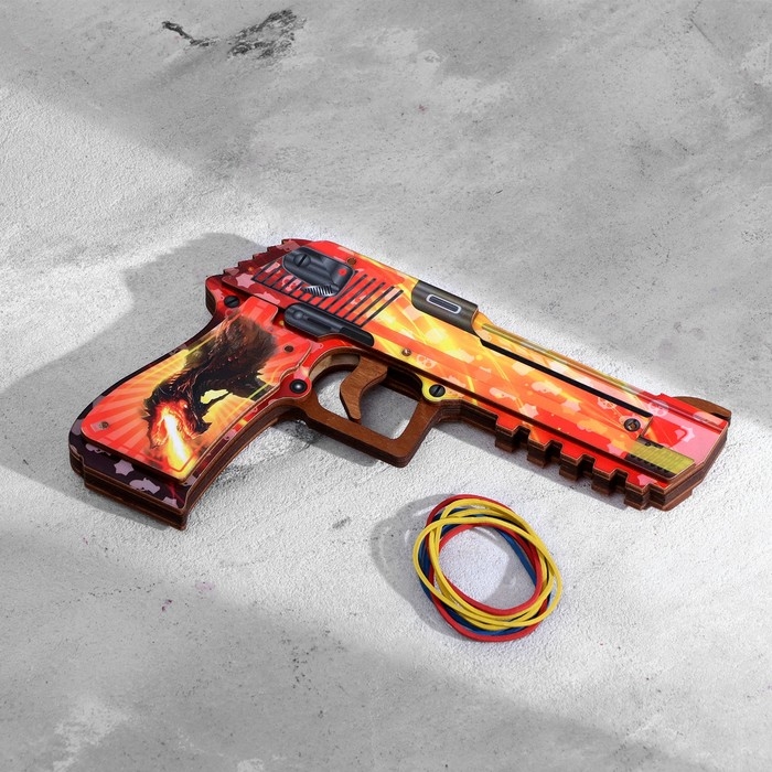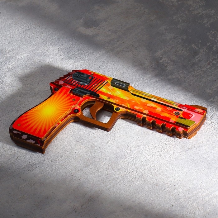 Сувенир деревянный "Пистолет-резинкострел" оранжевый