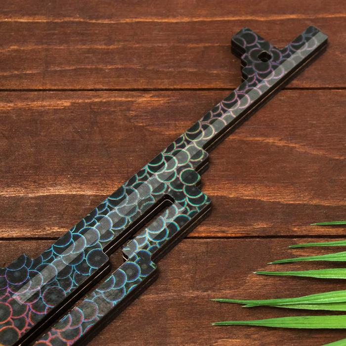 Деревянное сувенирное оружие абсолютно безопасно, оно не имеет острых углов и тщательно отшлифовано, поэтому исключает порезы и занозы. Сувенир повторяет внешний вид оригинального оружия, поэтому с таким изделием будет интересно играть в тематические игры.