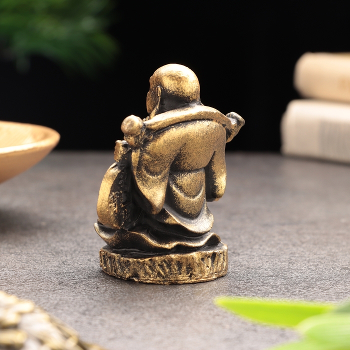 Нэцкэ полистоун под бронзу "Хотей с чашей. Удача" 6х8х9,5 см