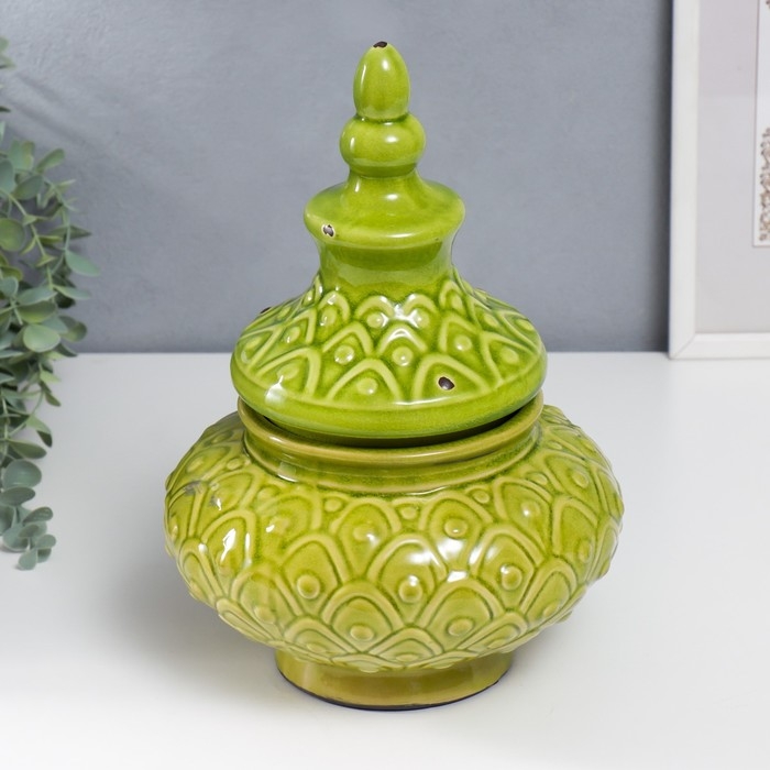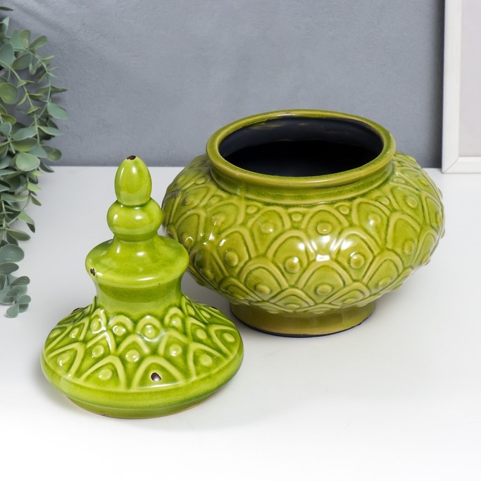 Сувенир интерьерный керамика шкатулка "Чешуйки" зелёный 29х22х22 см