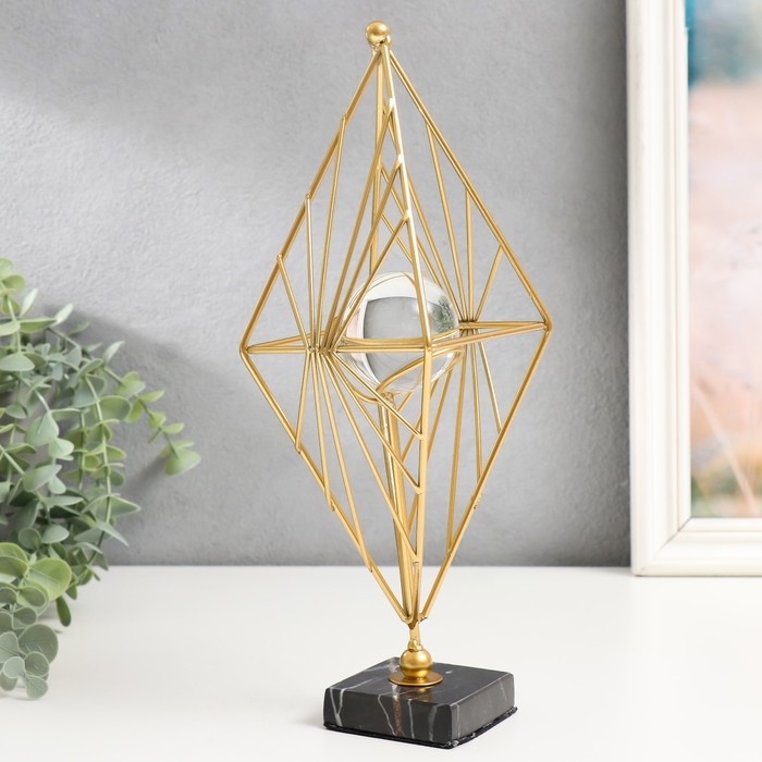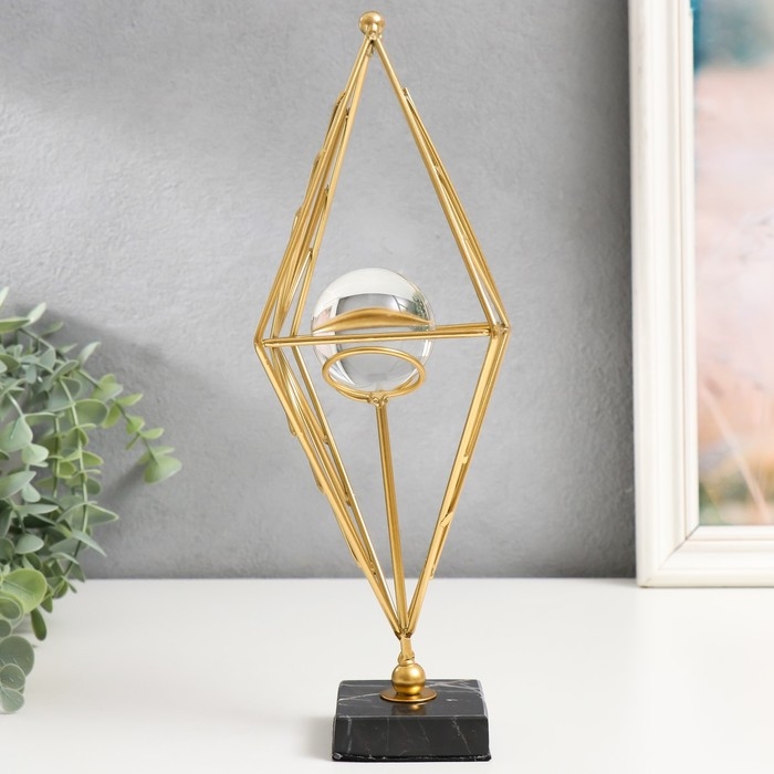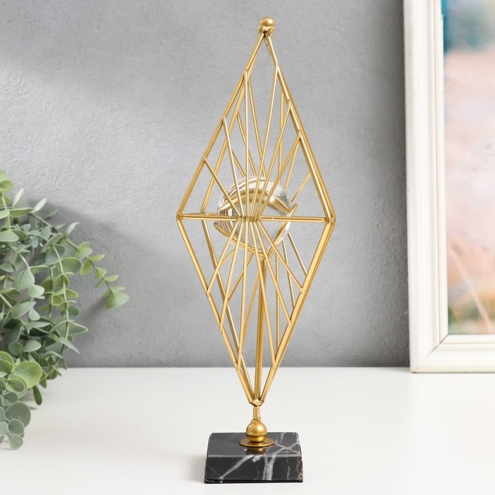 Сувенир интерьерный металл, стекло "Геометрический ромб" золото 28х13х13 см