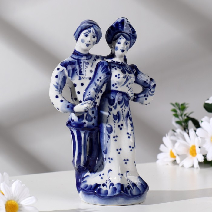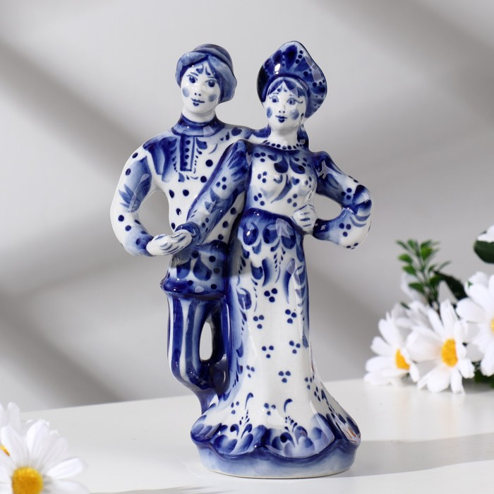 Собственный стиль Гжели — синие и голубые узоры, растительный орнамент и витиеватые украшения на белом фоне. В каждом предмете легко и непринуждённо варьируются букеты и гирлянды, вводятся геометрические пояски, похожие на вязаное кружево, изделия украшает декоративная лепнина, изображаются пейзажные сюжеты.