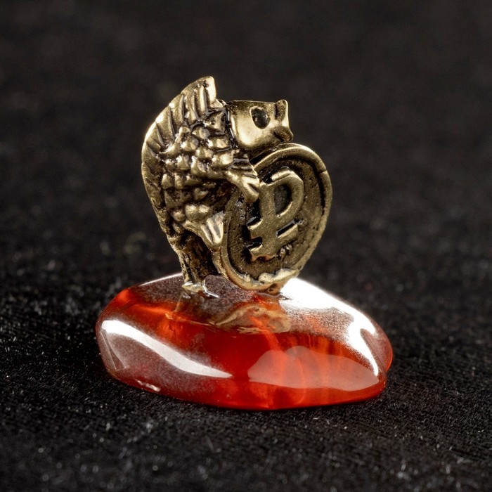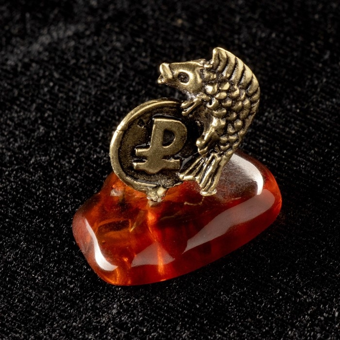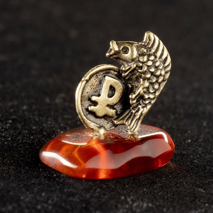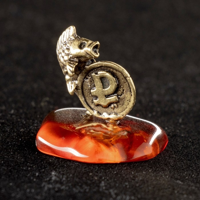 Сувенир "Карась с рублём", латунь, янтарь, 2,5х2,5 см