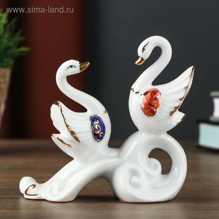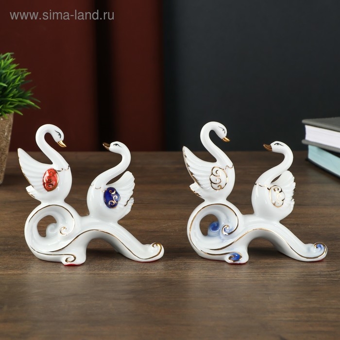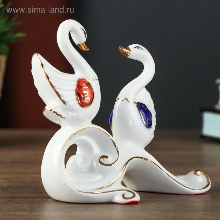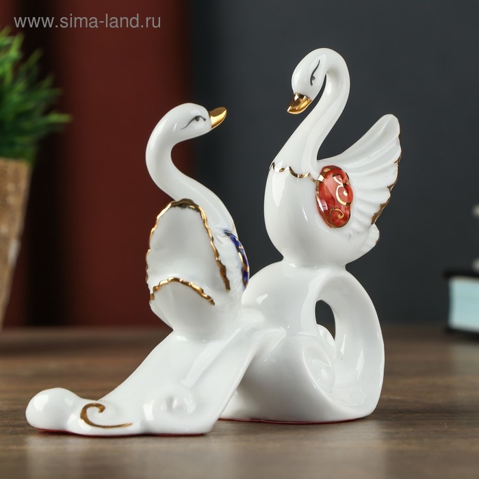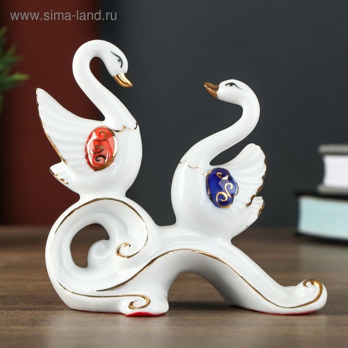 Сувенир керамика "2 белых лебедя на голубой волне"МИКС 10,6х5,5х11 см