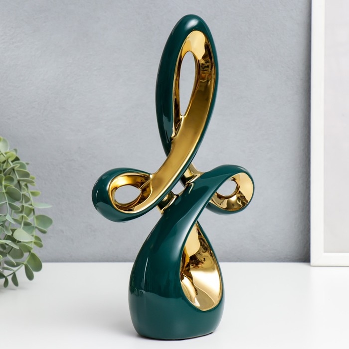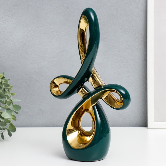 Сувенир керамика "Абстракция. Связь" тёмно-зелёный с золотом 30х20 см