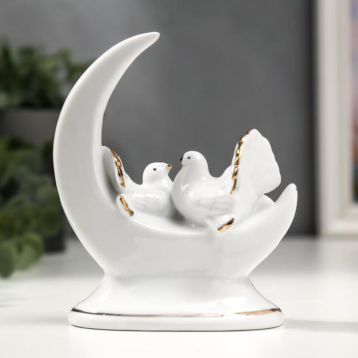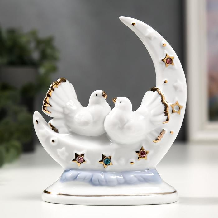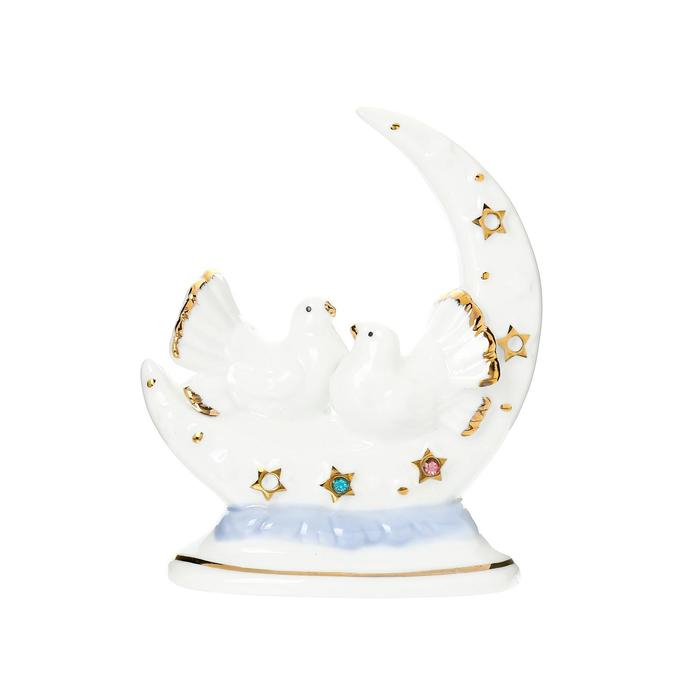 Сувенир керамика "Белые голуби с месяцем" с золотом, стразы 12 см