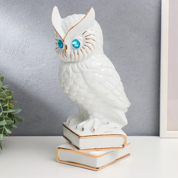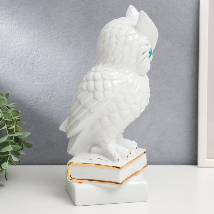 Сувенир керамика "Белый филин на книгах" с золотом 29х14,5х14 см
