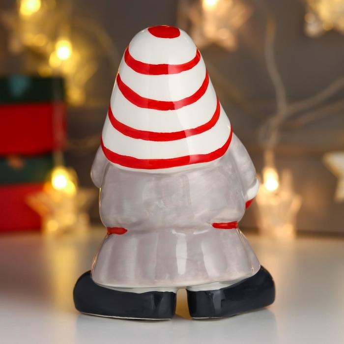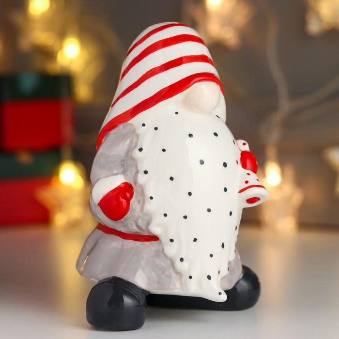 Сувенир керамика "Дед Мороз, серый кафтан, полосатый колпак, с колокольчиком" 15х11х9,5 см