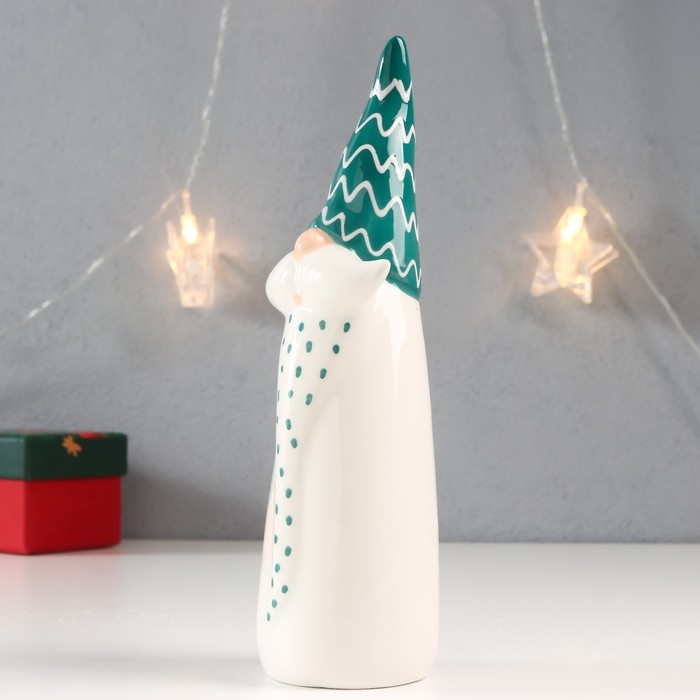 Сувенир керамика "Дед Мороз - усатый, зелёный колпак-зигзаг" 21,5х6,4х5,9 см