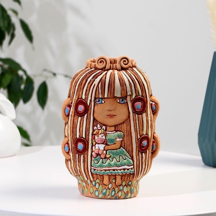 Сувенир керамика "Девочка из сказки с единорогом" (Ваза), светлая h=24,5 см V=1,5л