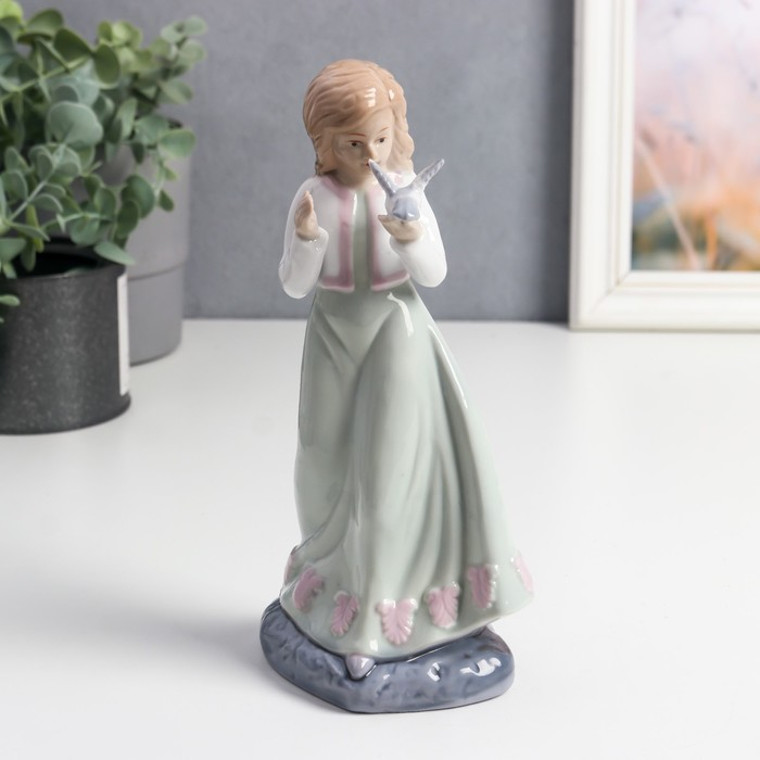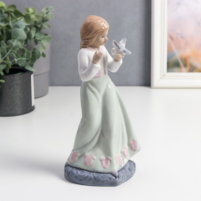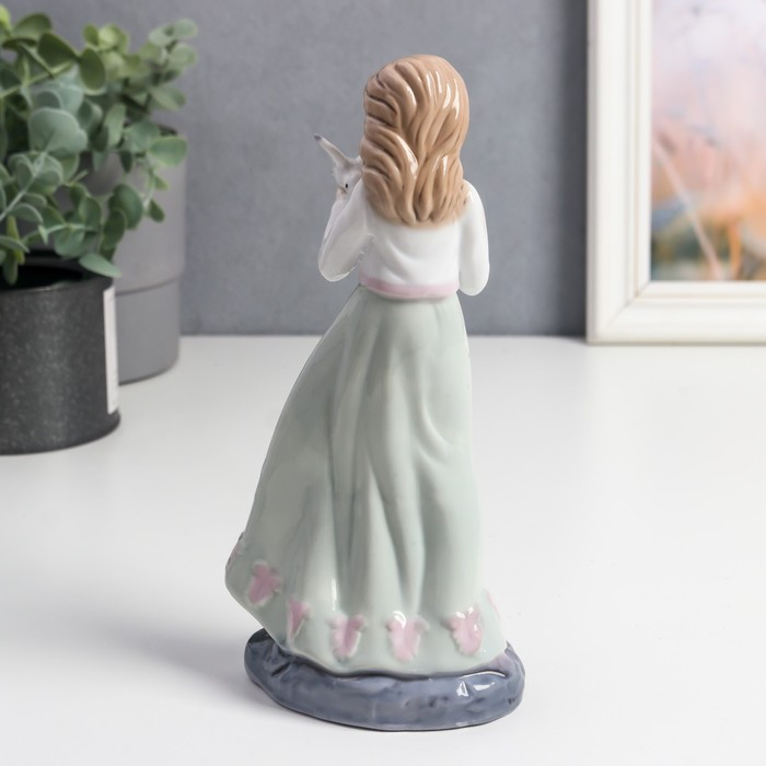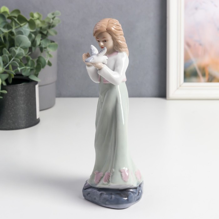 Сувенир керамика "Девочка в платье с зеленой юбкой, с голубем на руке" цветной 20х6,7х8 см
