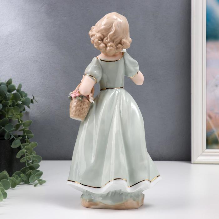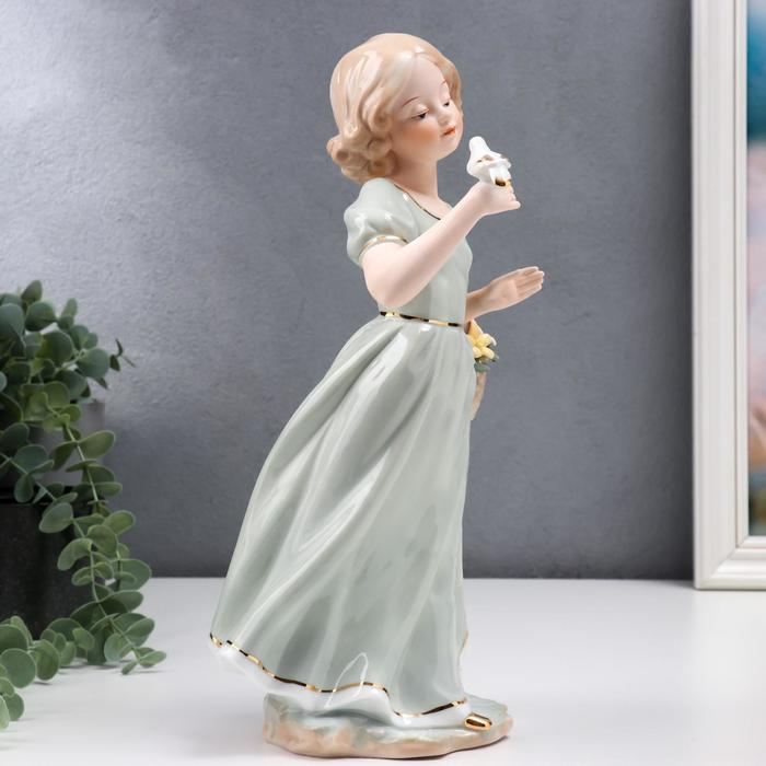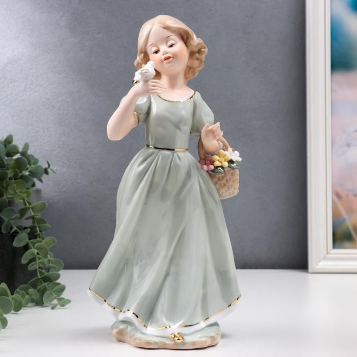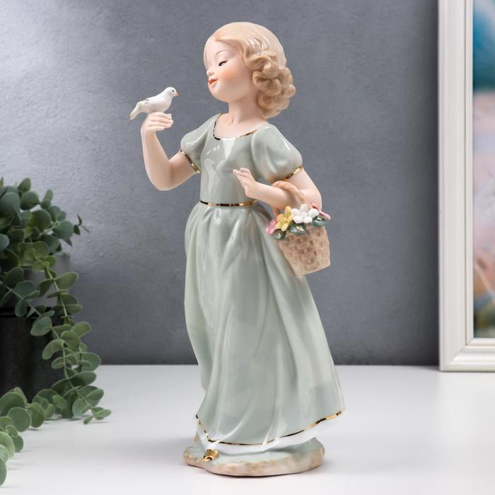 Сувенир керамика "Девочка в зелёном платье с голубем на руке, с корзиной цветов" 30 см
