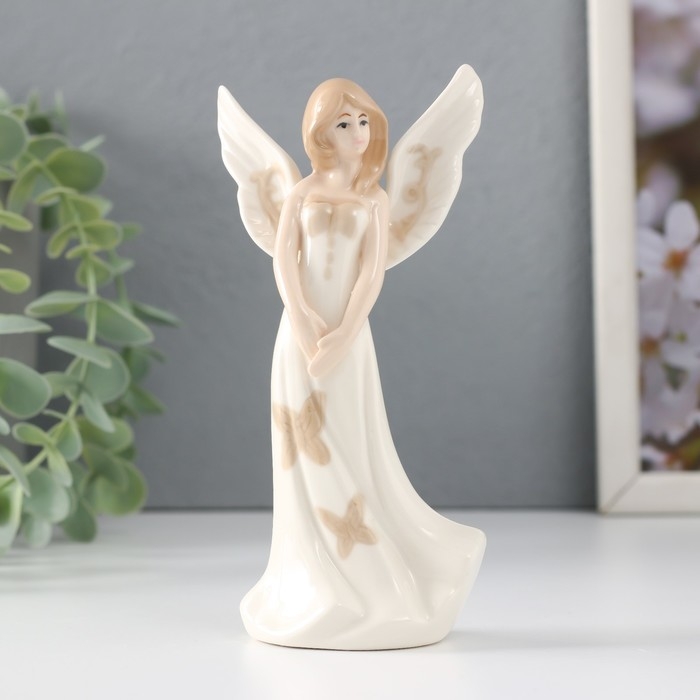 Сувенир керамика "Девушка-ангел в белом платье с бабочками" 4,5х7х14,5 см