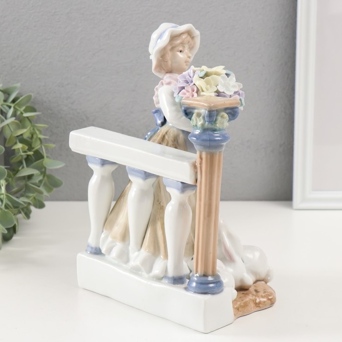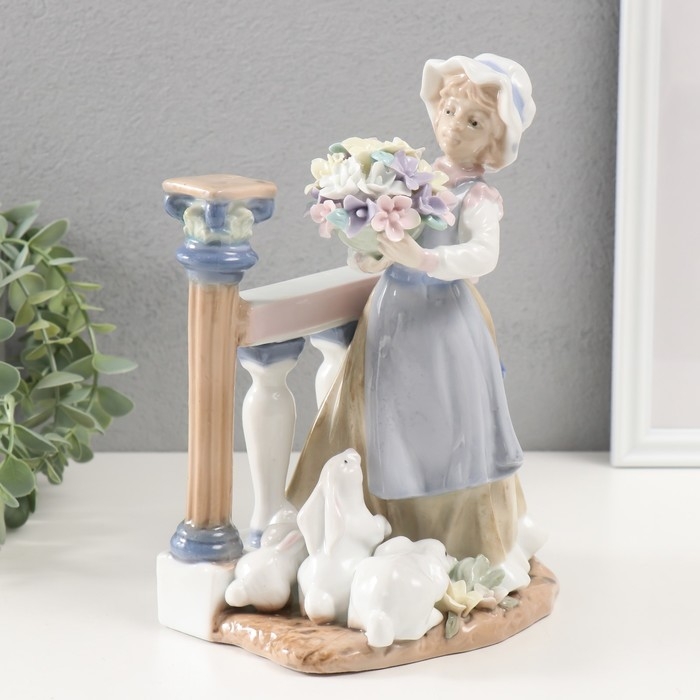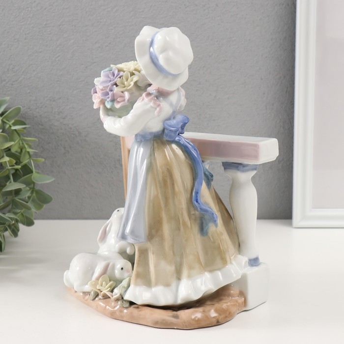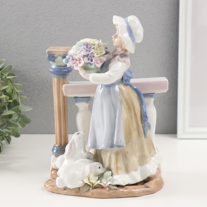 Сувенир керамика "Девушка с цветами в окружении кроликов" 11,5х16х23 см