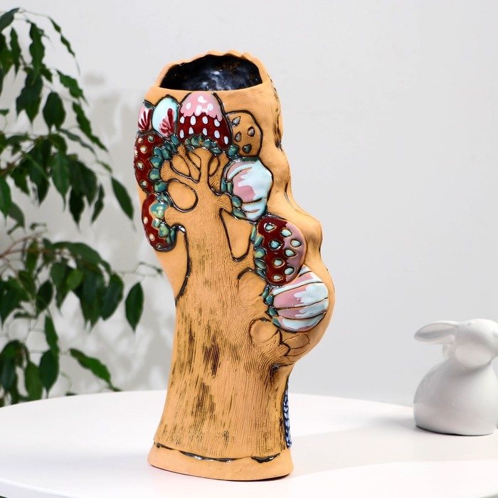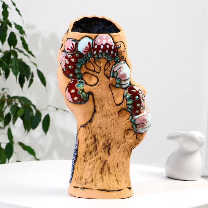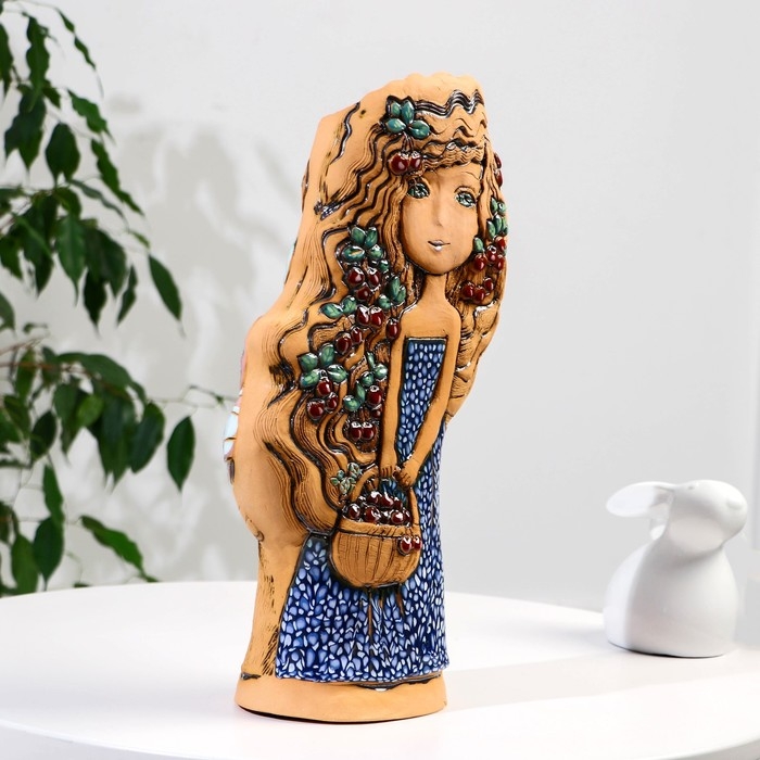 Сувенир керамика "Девушка с корзиной", платье в горошек (Ваза), тёмная h=40,5см V=2.5л