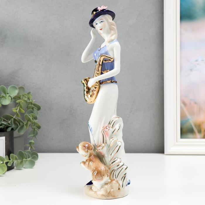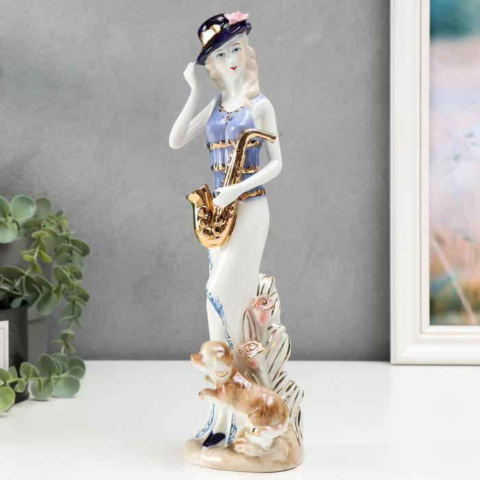 Сувенир керамика "Девушка с саксофоном и собакой" 30х8х8 см
