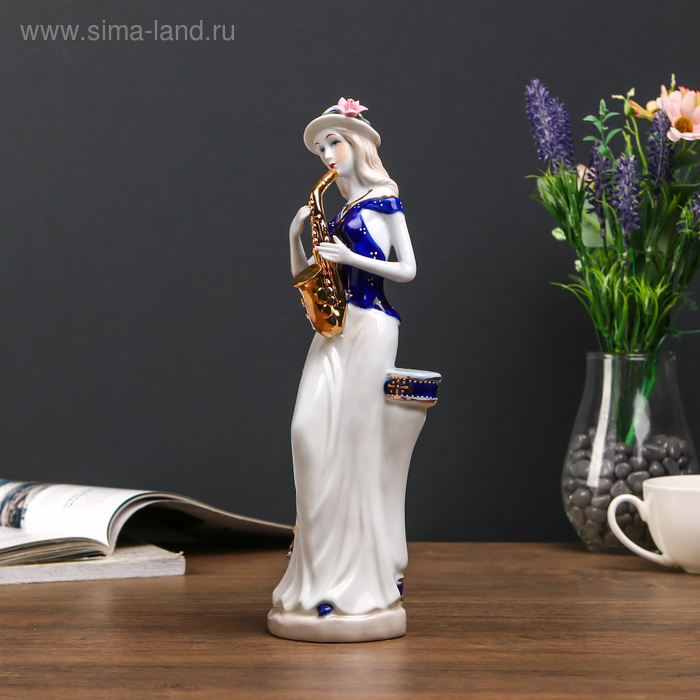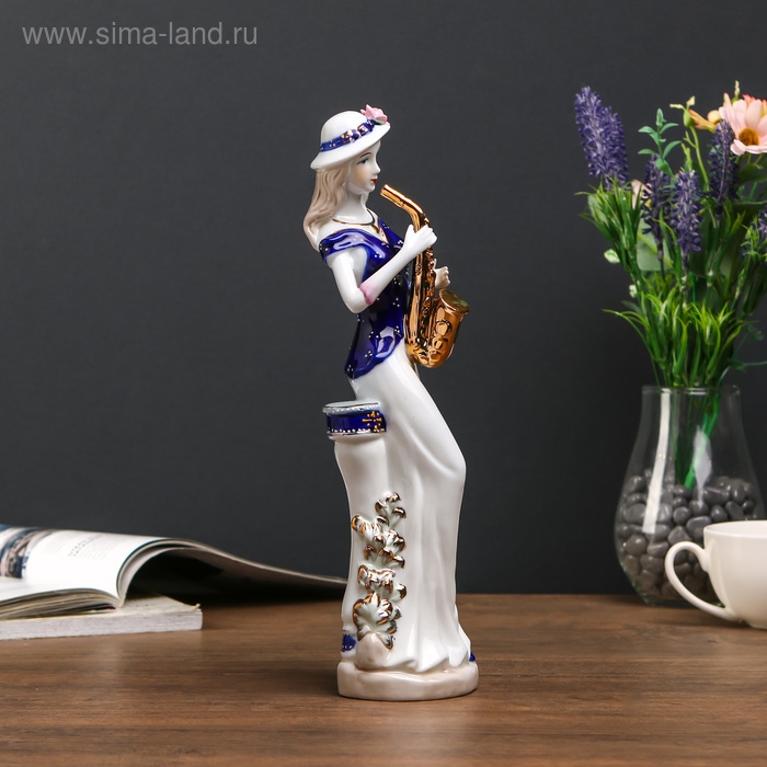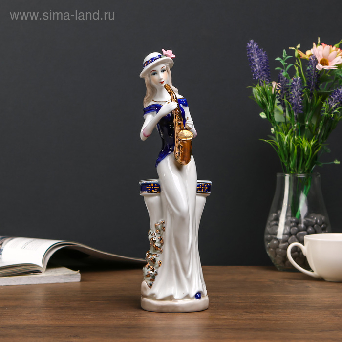 Сувенир керамика "Девушка с саксофоном у колонны" 28х9х6,5 см