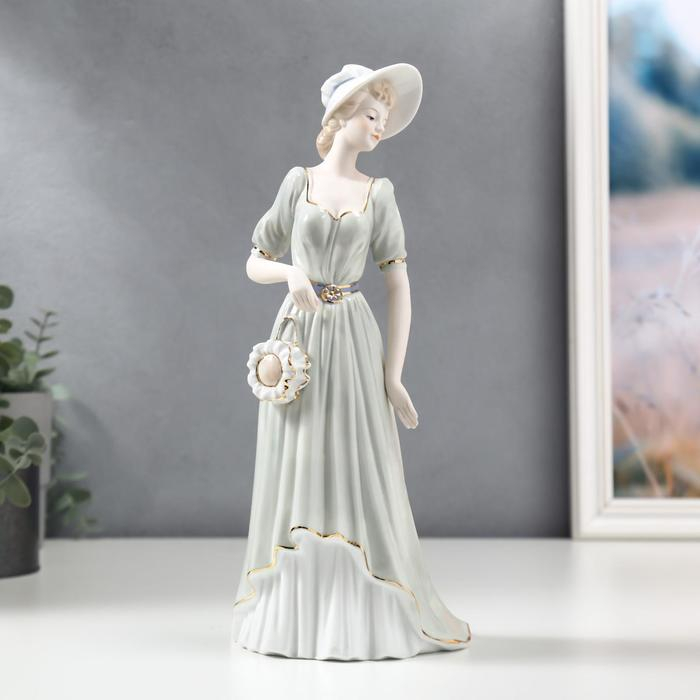 Сувенир керамика "Девушка в ретро-платье в шляпке-панамке с сумочкой" 32х10,5х13,5 см