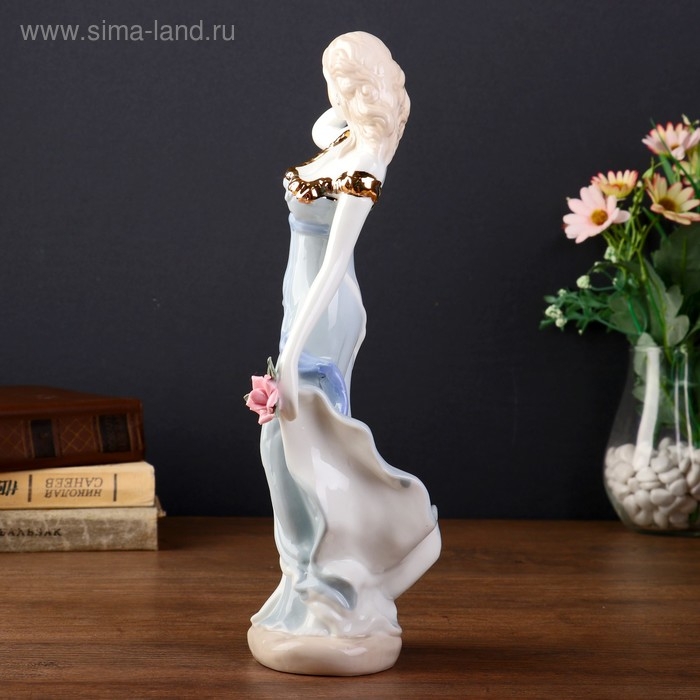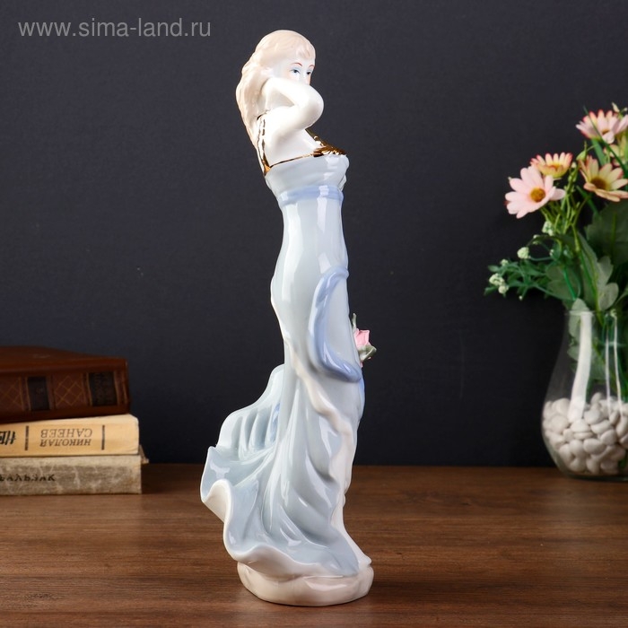 Сувенир керамика "Девушка в сером платье с розой в руке" 31х11х9,5 см