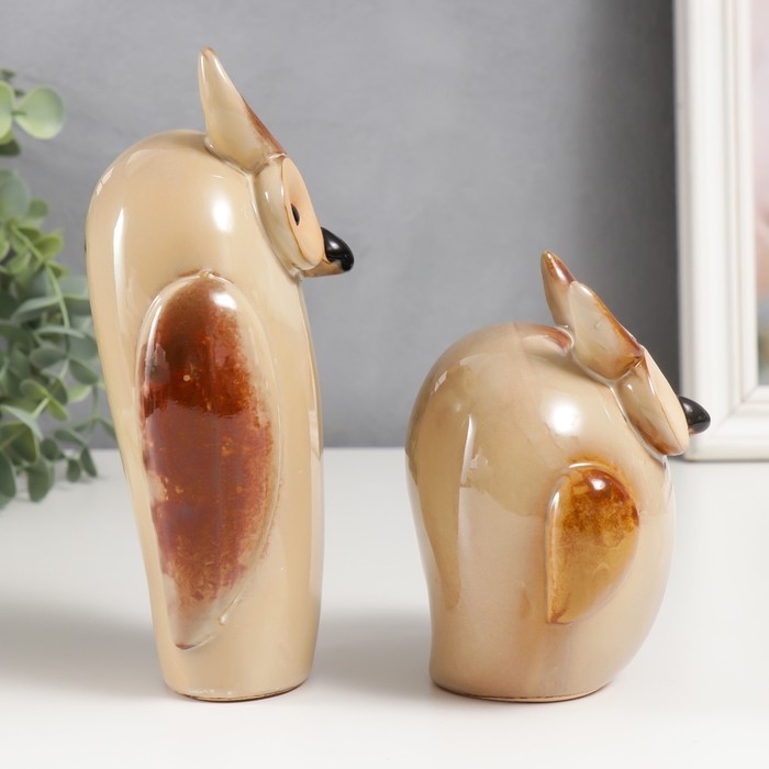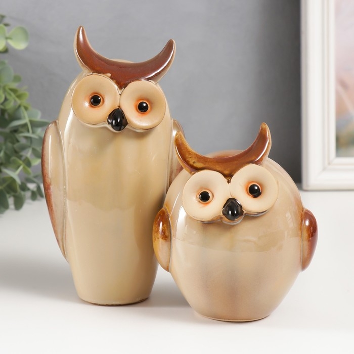 Сувенир керамика "Два филина" беж набор 2 шт 11,5х9,5х7,5 18х9х7 см