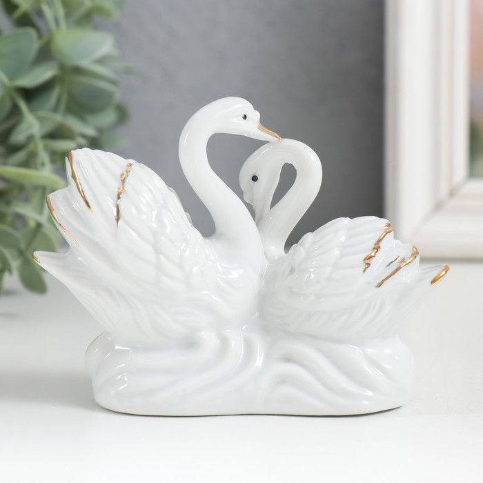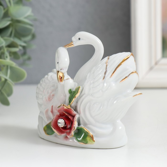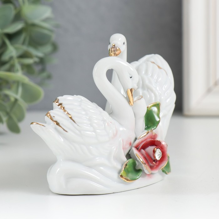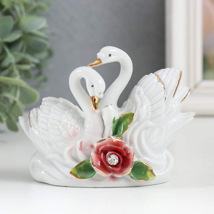 Сувенир керамика "Два лебедя с розой" страза 8х10,5х4 см