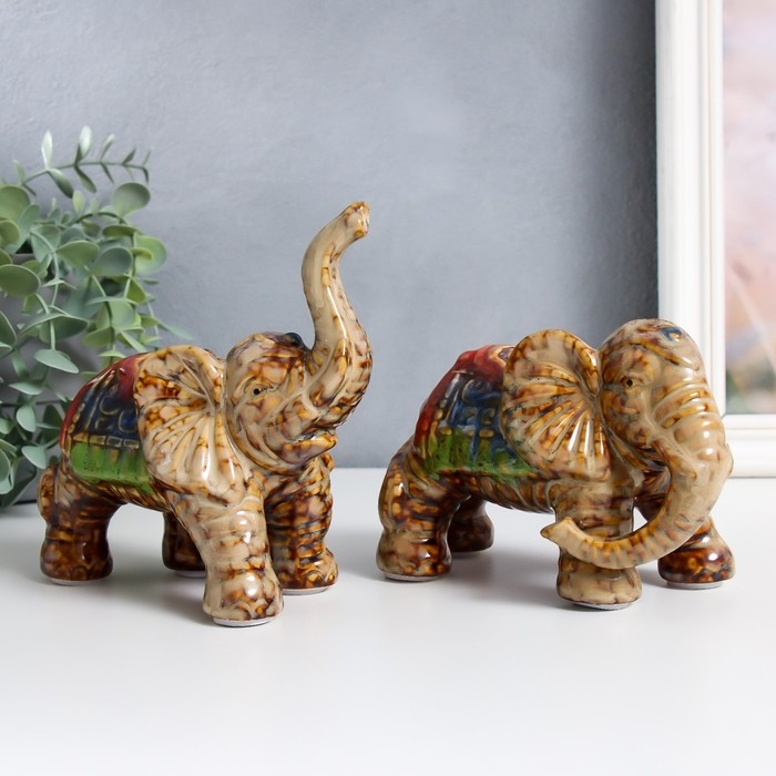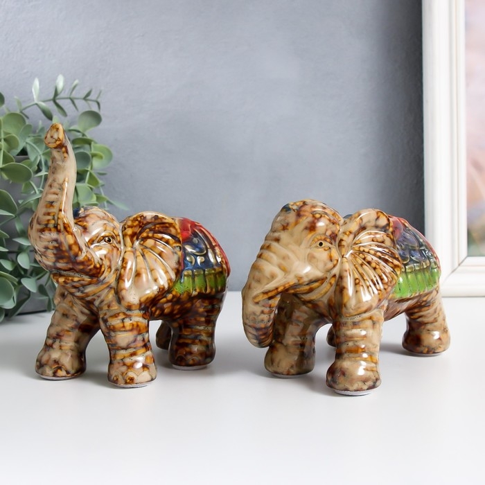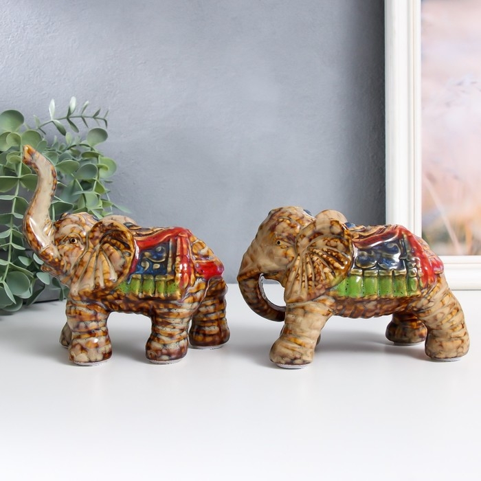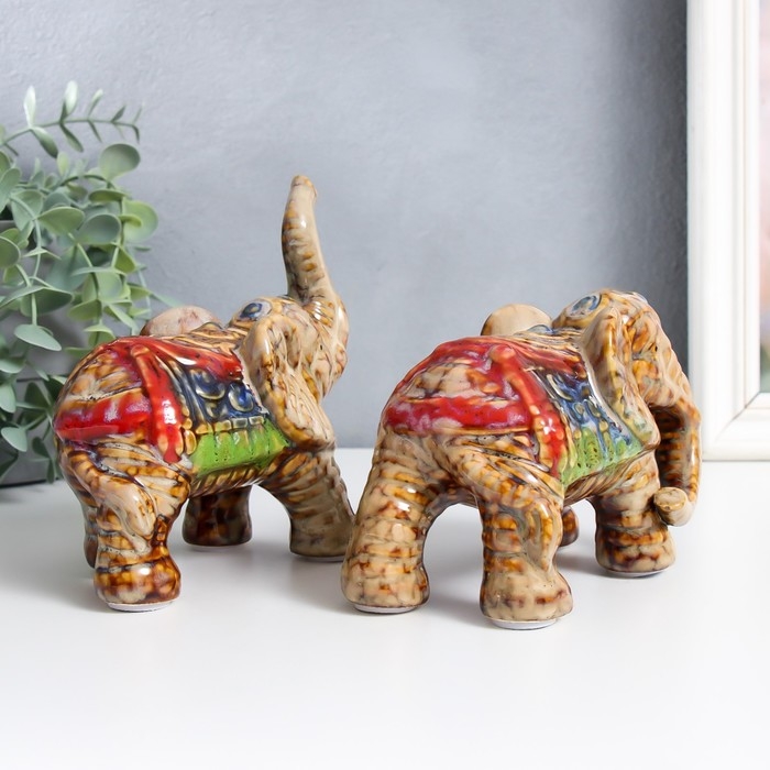 Сувенир керамика "Индийские слоны" набор 2 шт 8х14х10 см 7,5х14х14 см