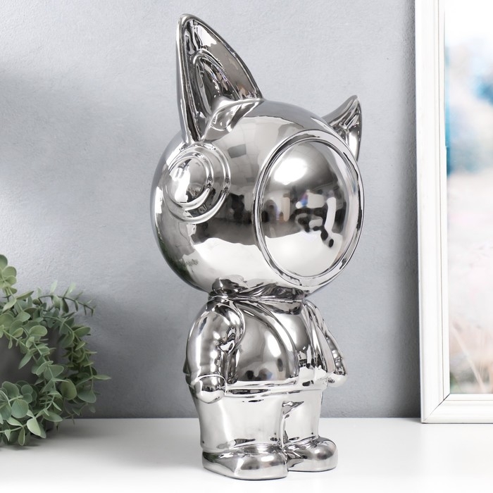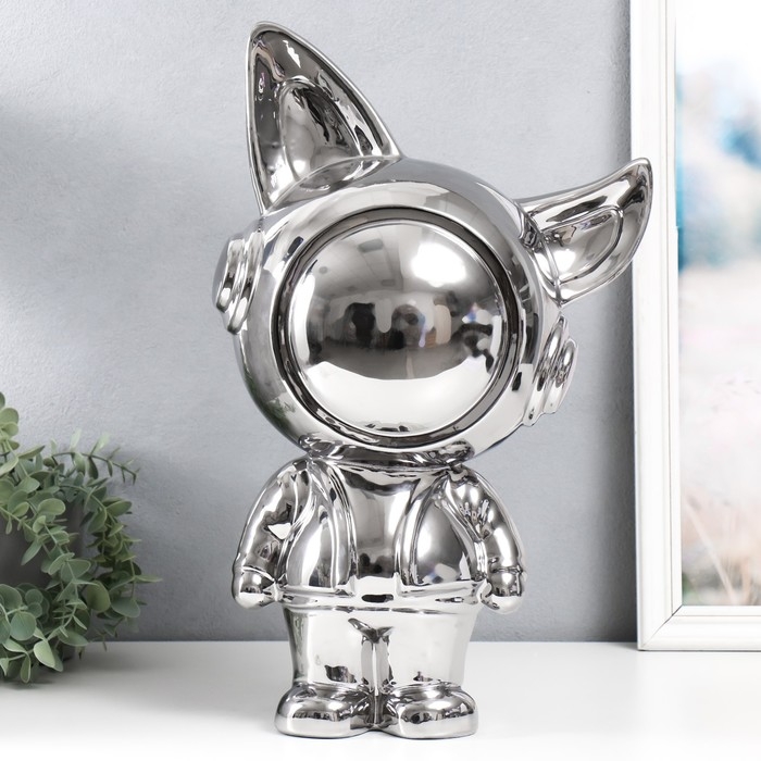 Сувенир керамика "Космонавт - лис" серебро 20х30х49 см