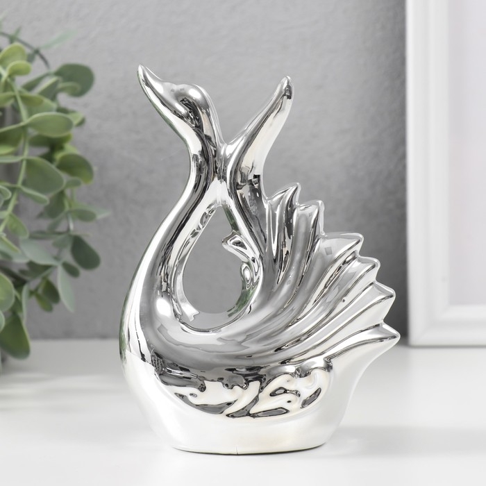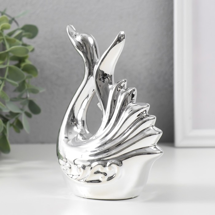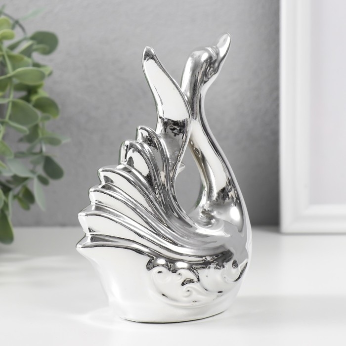 Сувенир керамика "Лебедь. Изящность" серебро 6,5х11х14,5 см