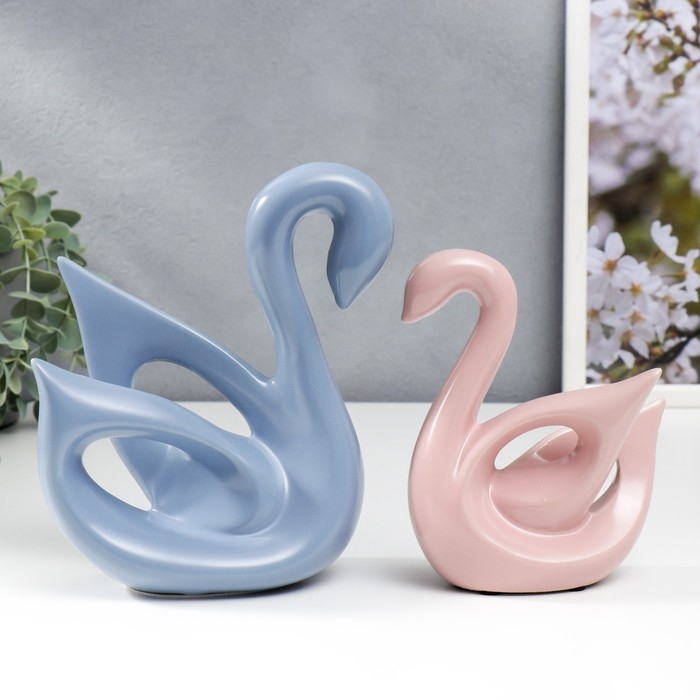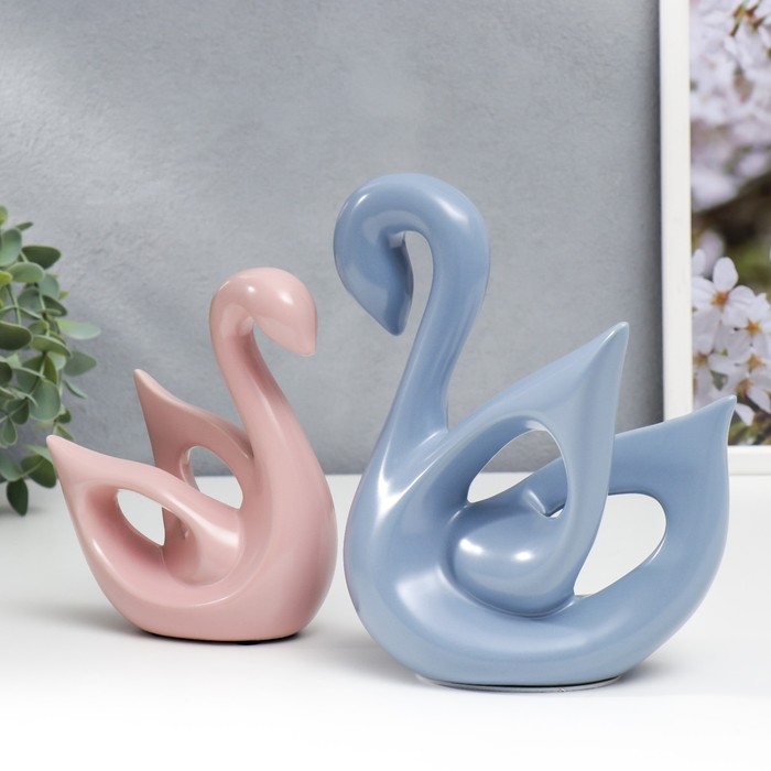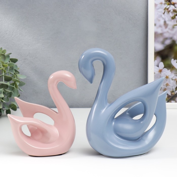 Сувенир керамика "Лебеди голубой и розовый" матовый набор 2 шт 14х6х15 15х20х20 см