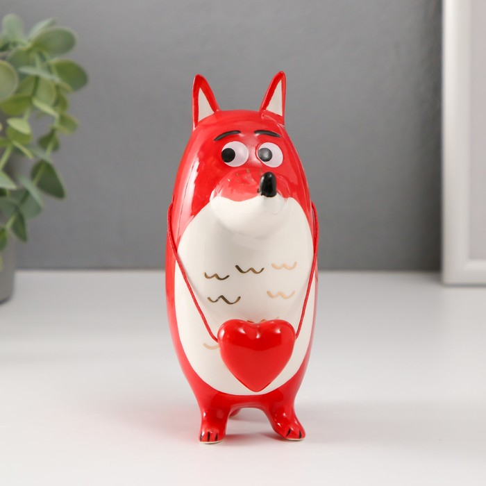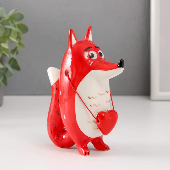 Сувенир керамика "Лис с сердечком" красный с золотом 14х5,8х11 см
