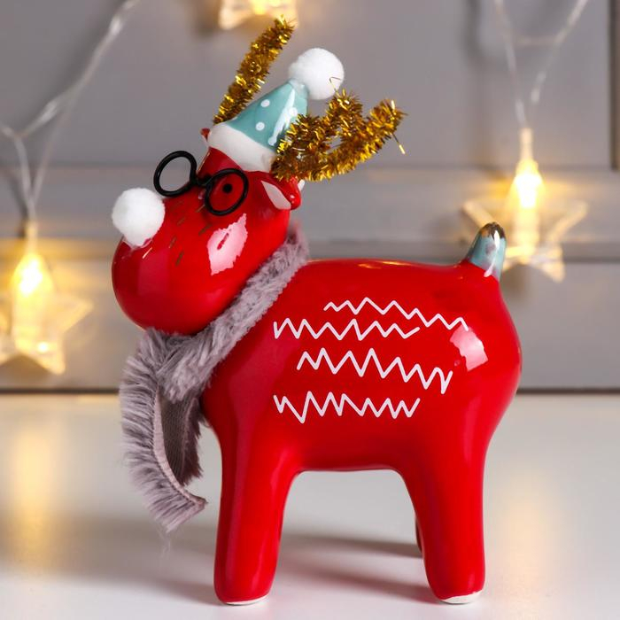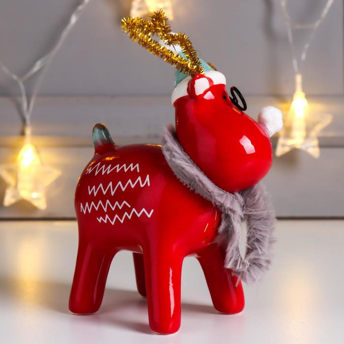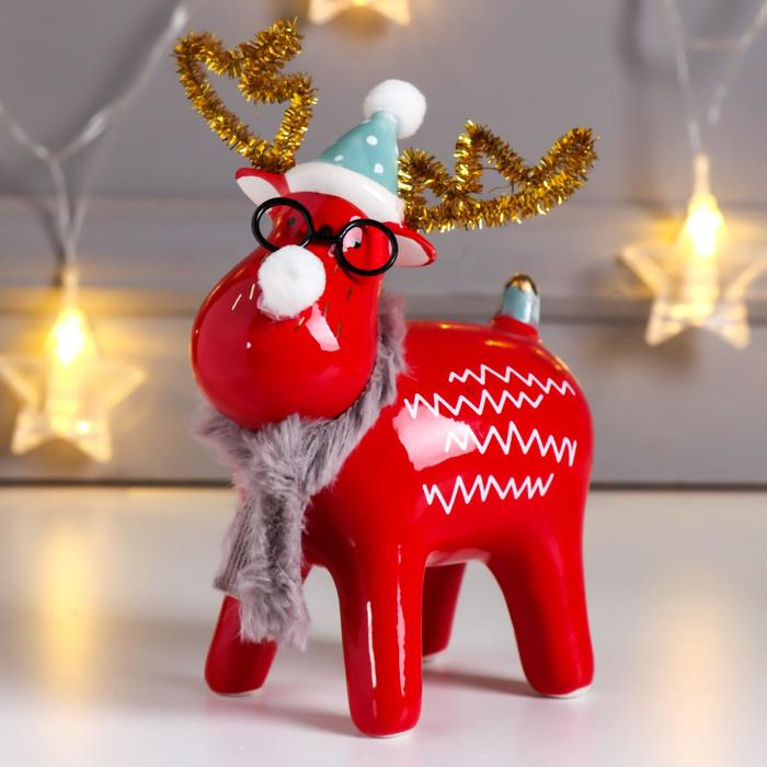 Сувенир керамика "Лосик в колпаке и очках" красный 15,5х6,5х10,7 см
