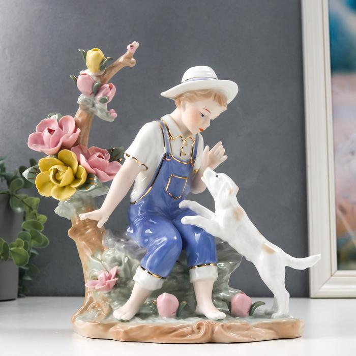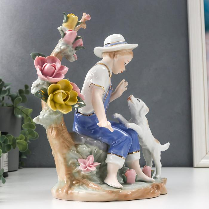 Сувенир керамика "Мальчик с собакой" 25х13х19,5 см