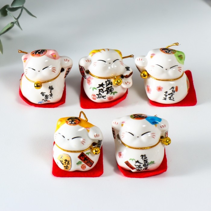 Сувенир керамика "Манэки-нэко - пухлые щёчки" 4,5х3,8х4,6 см набор 5 шт