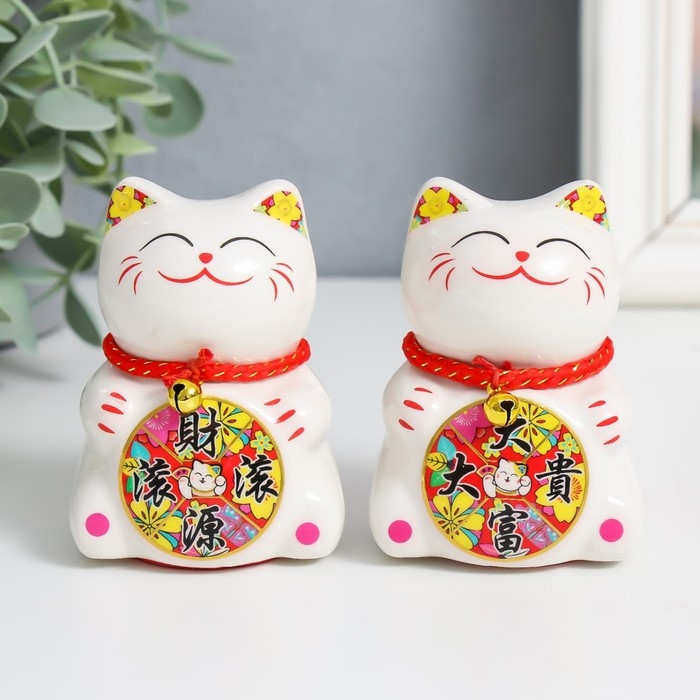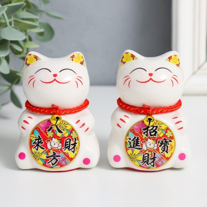 Сувенир керамика "Манэки-нэко с колесом счастья" 7,5х6х5,5 см МИКС
