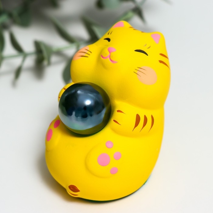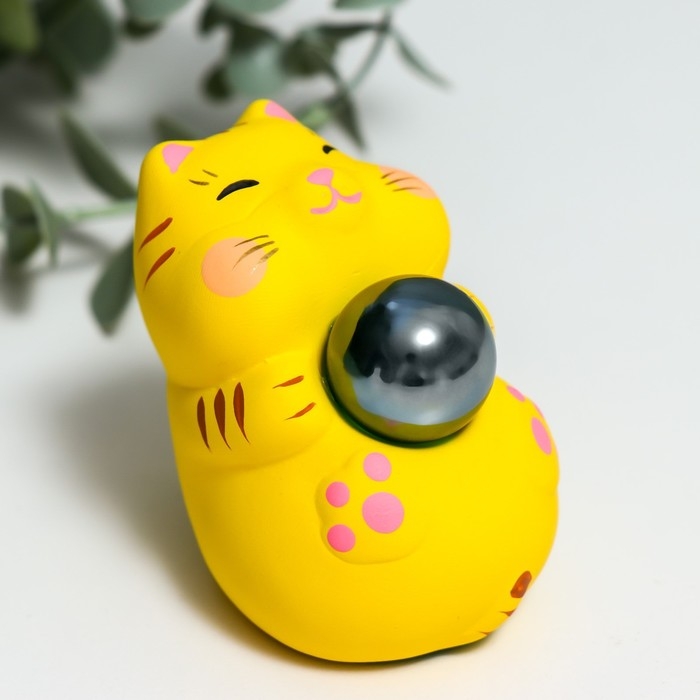 Сувенир керамика "Манэки-нэко со стеклянным шаром" микс 7,5х5х7,6 см