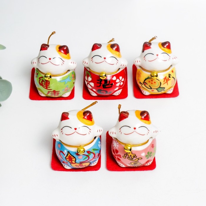 Сувенир керамика "Манэки-нэко в костюмчике" 4,5х3,6х4,6 см набор 5 шт
