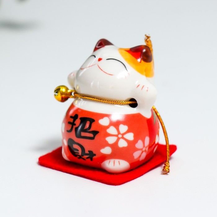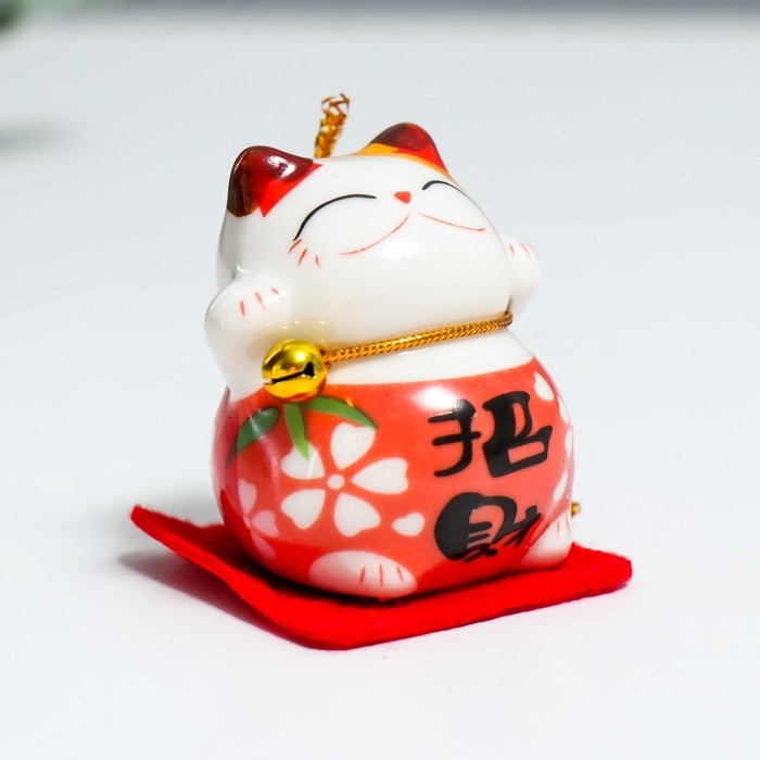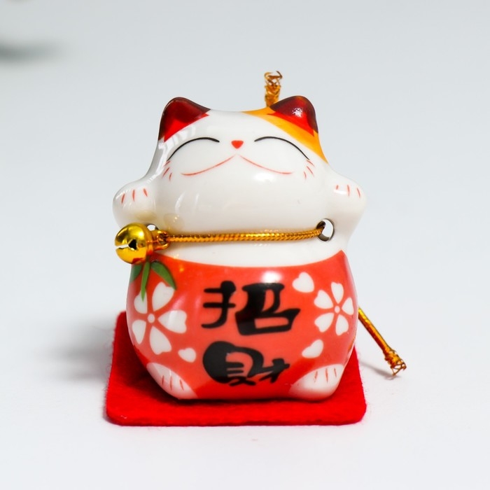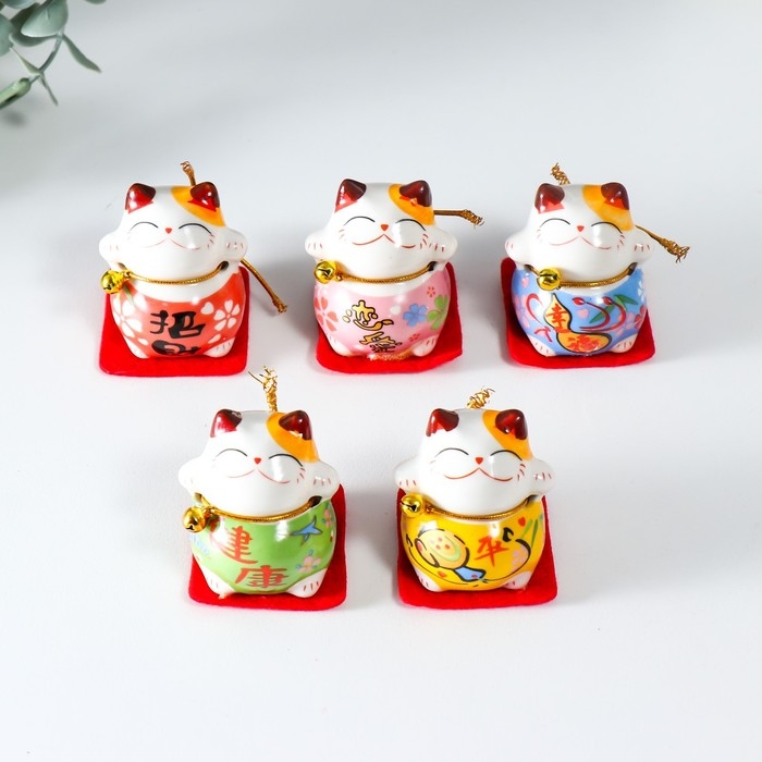 Сувенир керамика "Манэки-нэко в костюмчике с бубенчиком" 4,5х3,8х4,6 см набор 5 шт