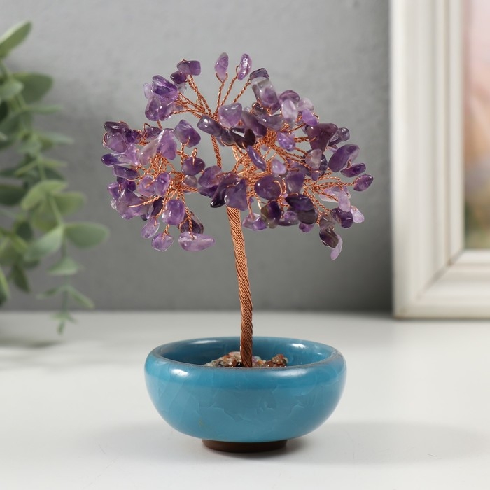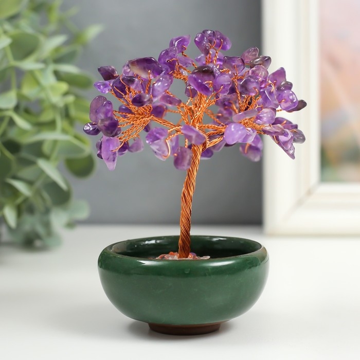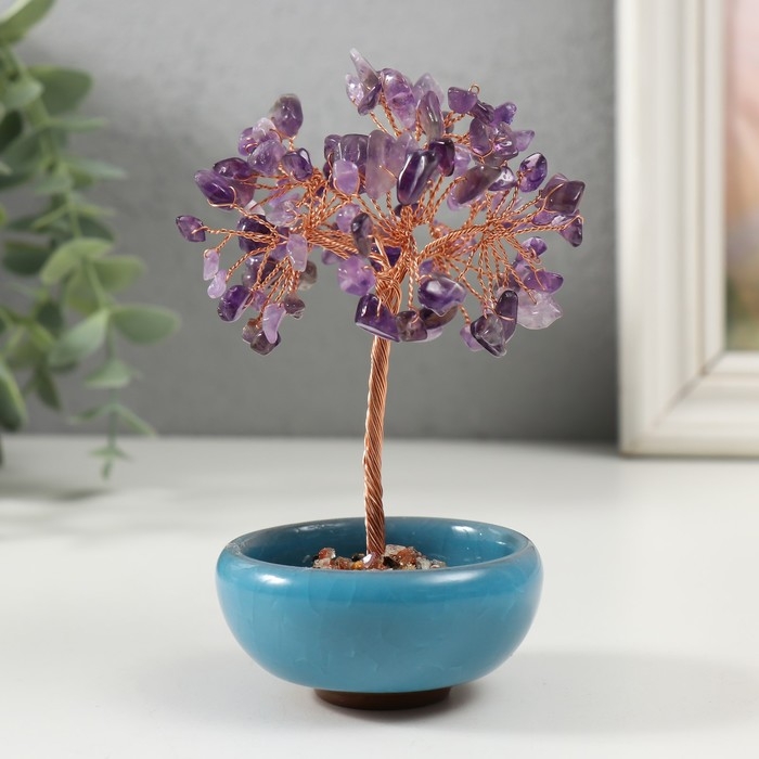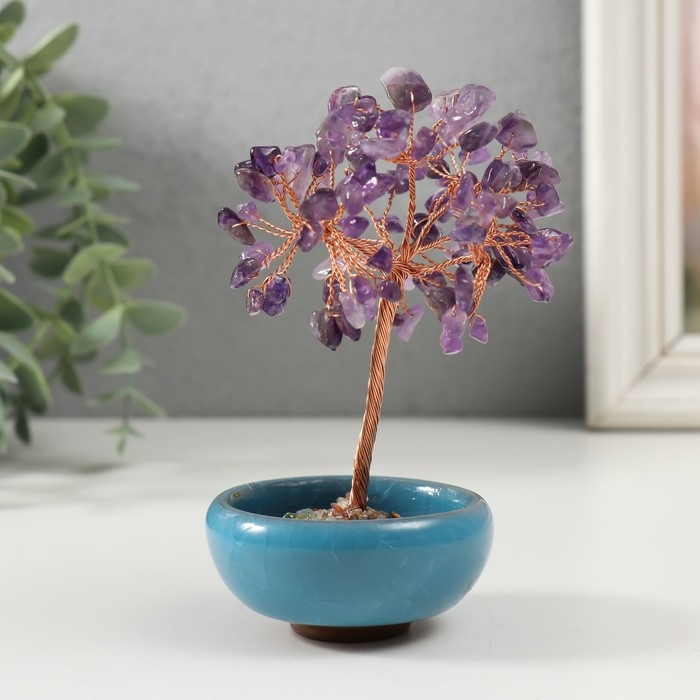 Сувенир керамика, металл, акрил "Деревце удачи в горшочке" под аметист МИКС