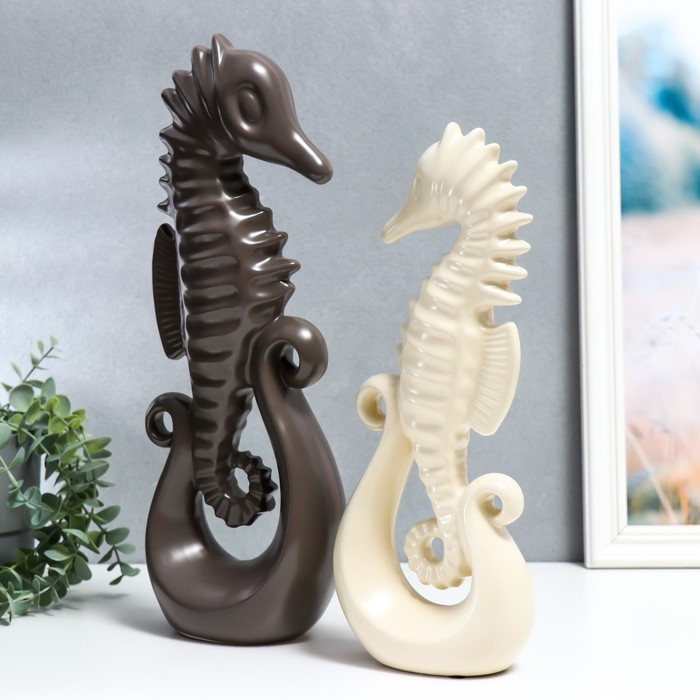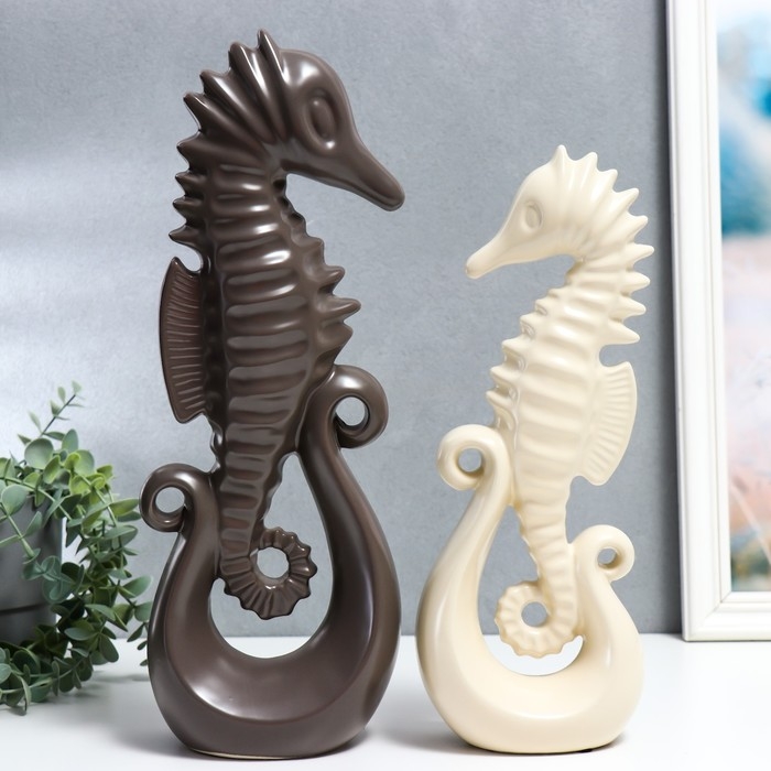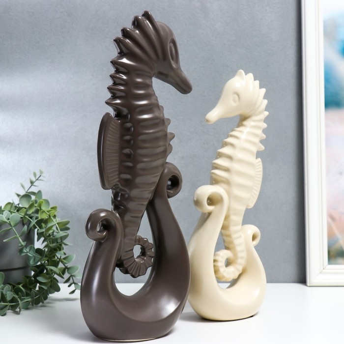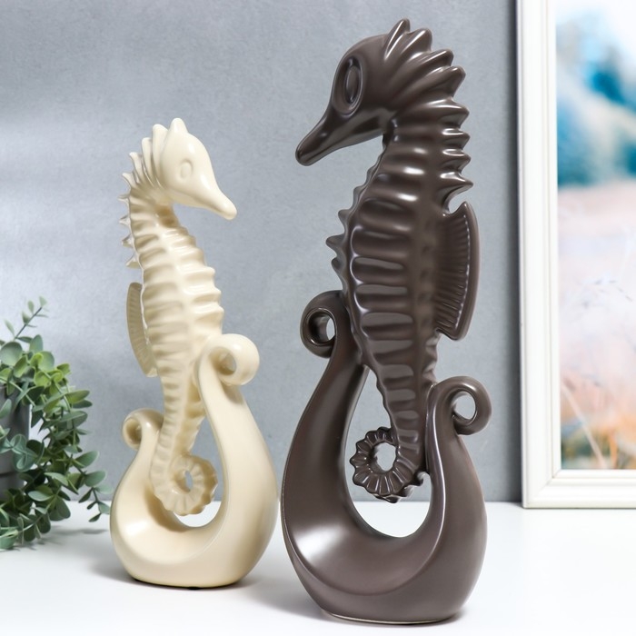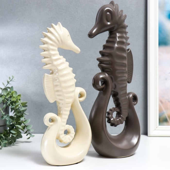 Сувенир керамика "Морские коньки" матовый шоколад и сливки набор 2 шт 38,5х8,5х13,5 см