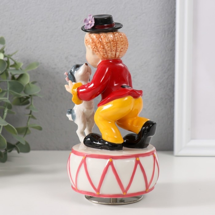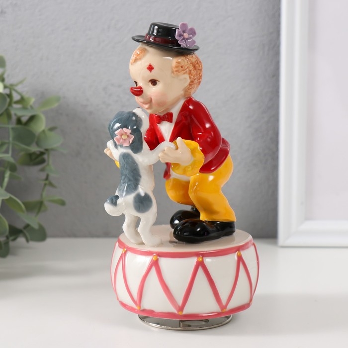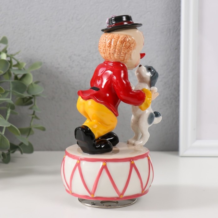 Сувенир керамика музыкальный "Клоун танцует с собачкой на барабане" 8х9,5х16,5 см