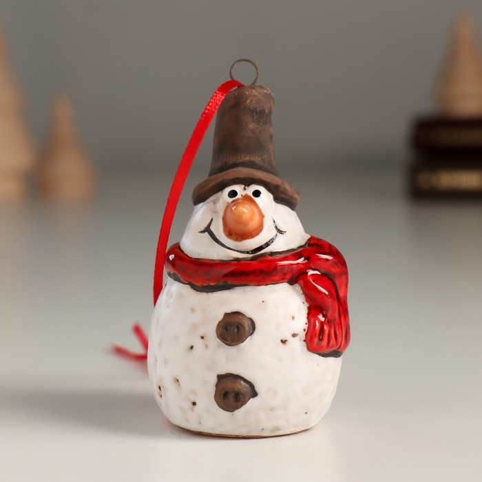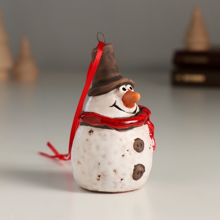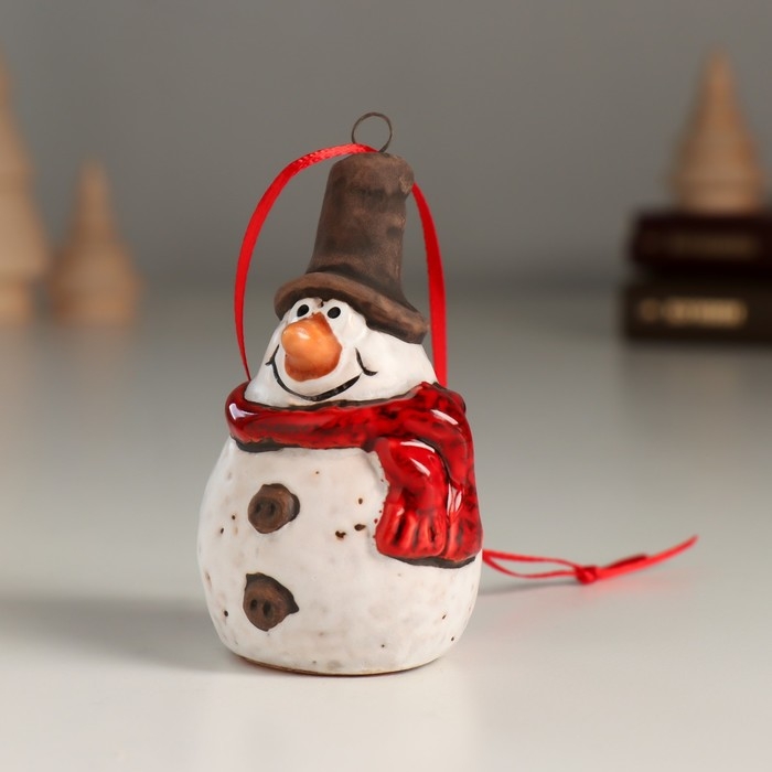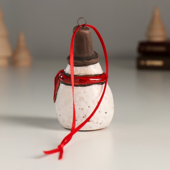 Сувенир керамика подвеска "Снеговичок в цилиндре и шарфике" 3,9х4х6,9 см