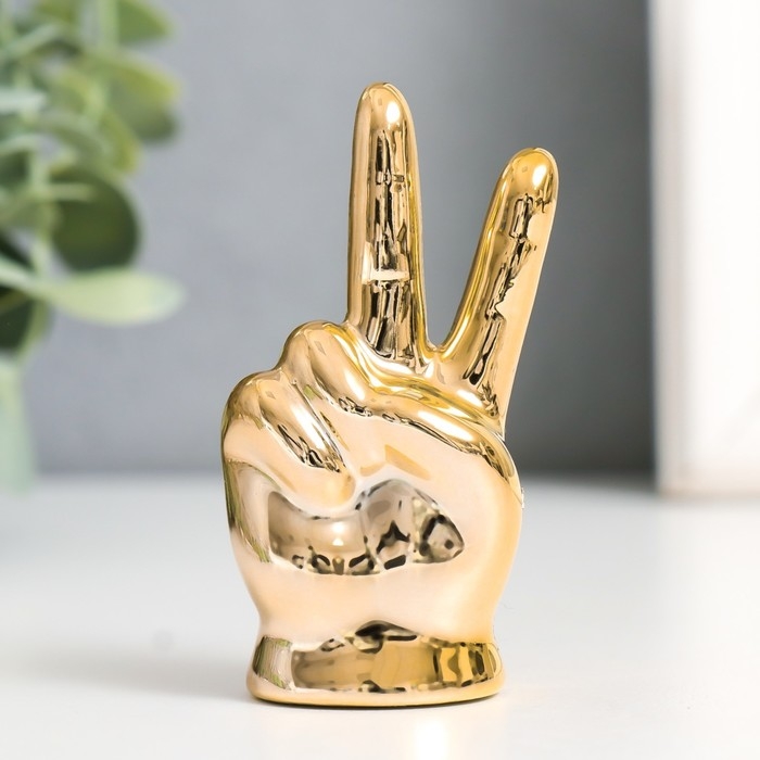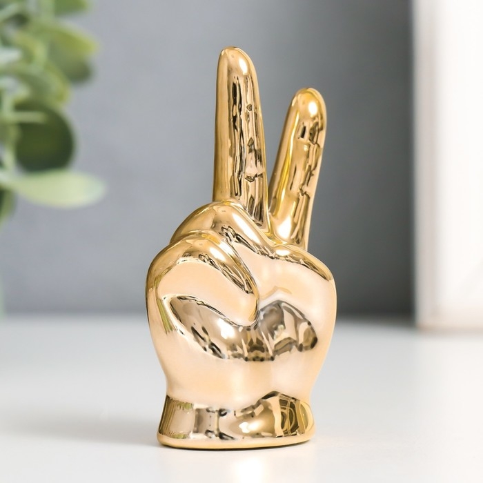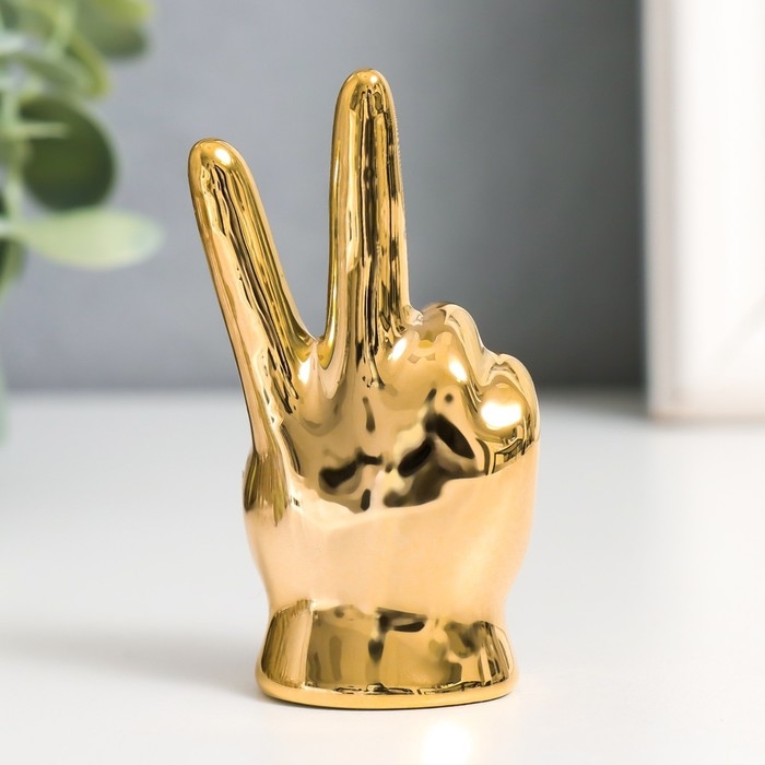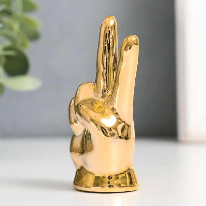Сувенир керамика "Рука - Мир" золото 4х2,7х7,5 см