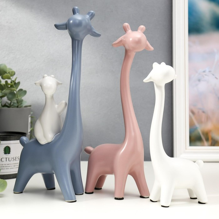 Сувенир керамика "Семейство жирафов" матовый набор 3 шт h=19; 26; 27 см