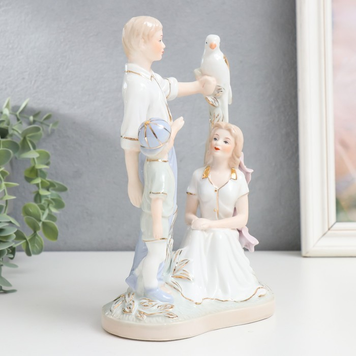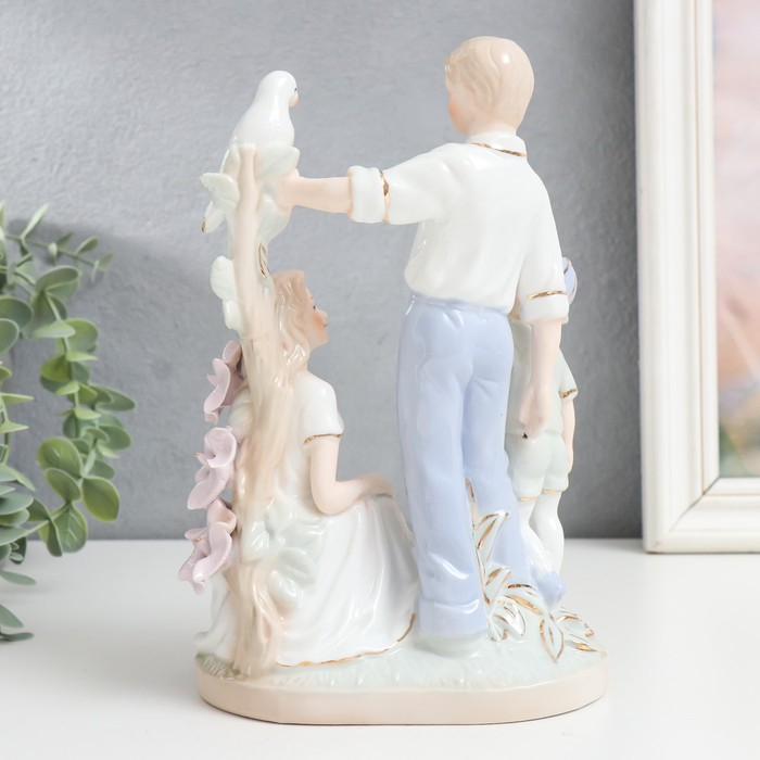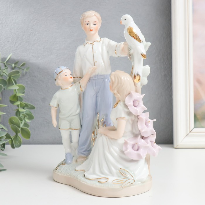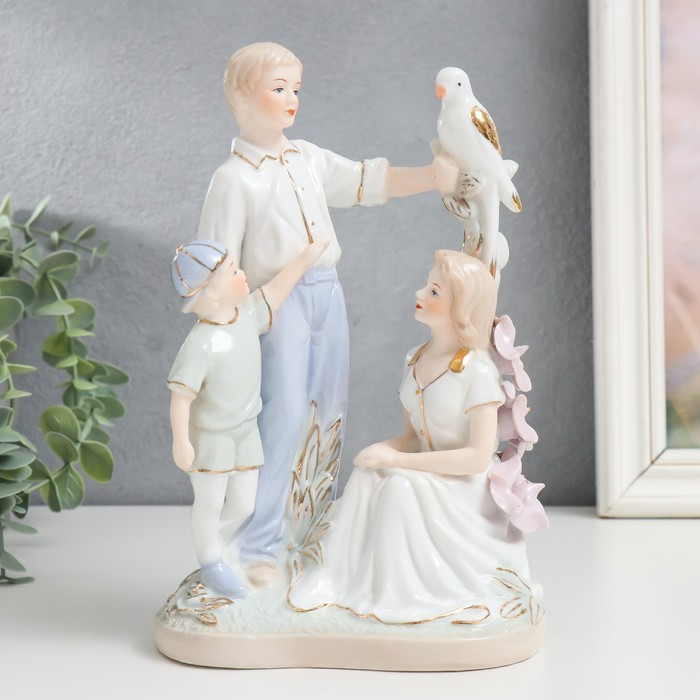 Сувенир керамика "Семья на прогулке с птицей" 20 см