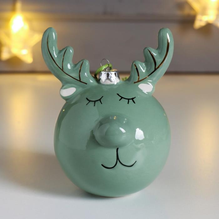 Сувенир керамика шар "Лосик" зелёный 10х7,5х7,7 см