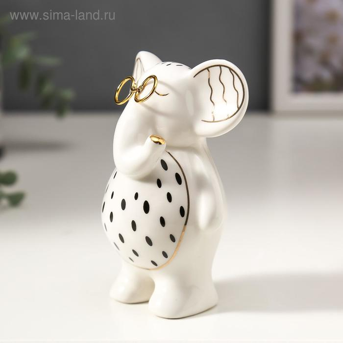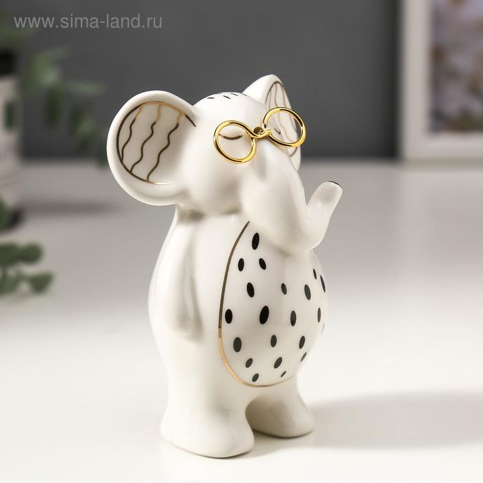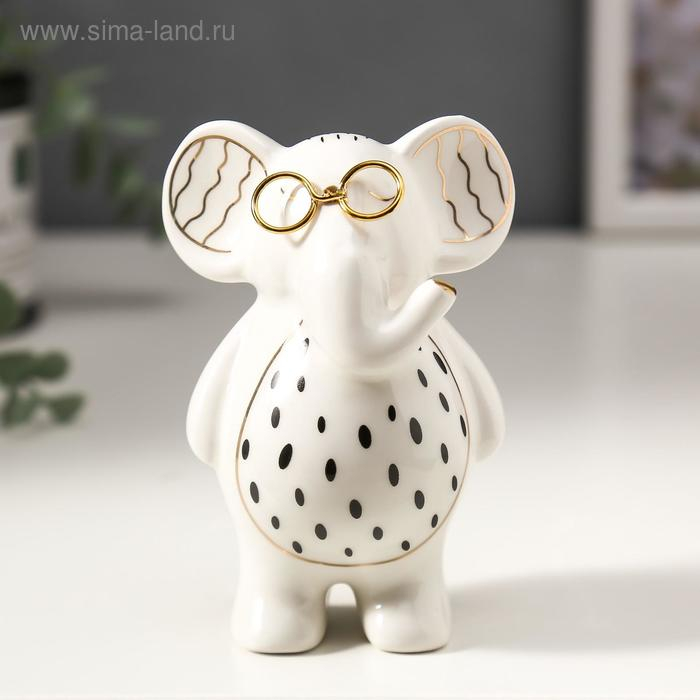 Сувенир керамика "Слонёнок в очках" бело-чёрный с золотом 10х5х7 см