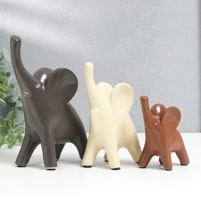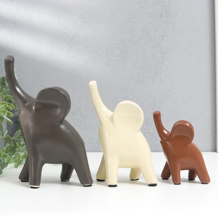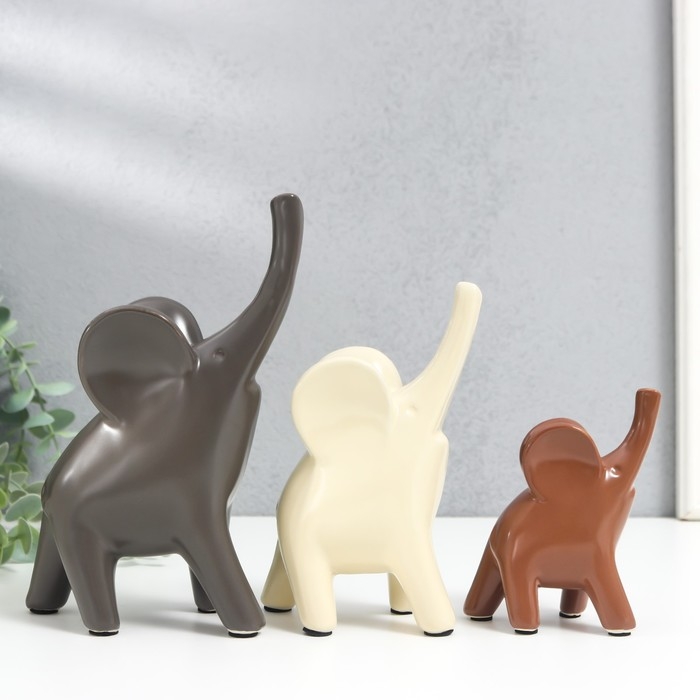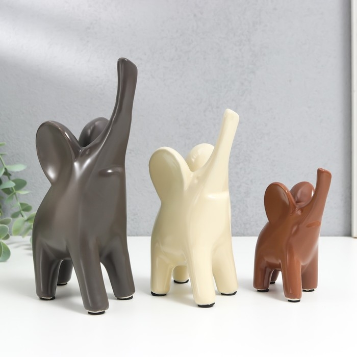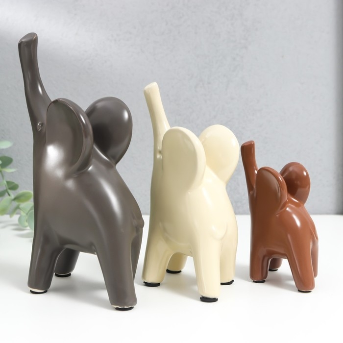 Сувенир керамика "Слоники в кофейных тонах" набор 3 шт 9х5х11; 10х6х15,5; 14,5х7х19,5см