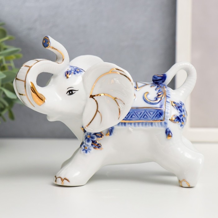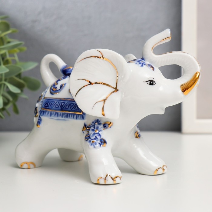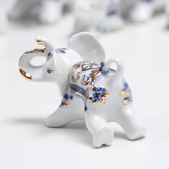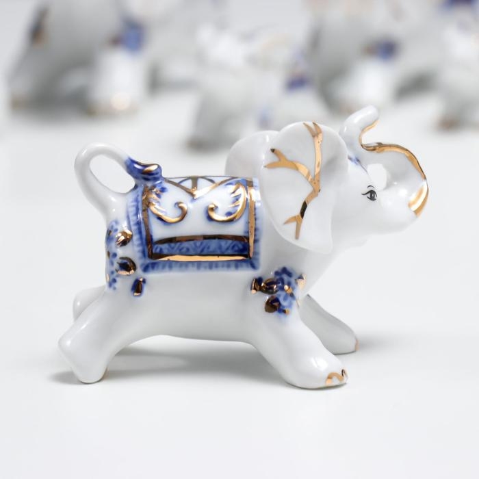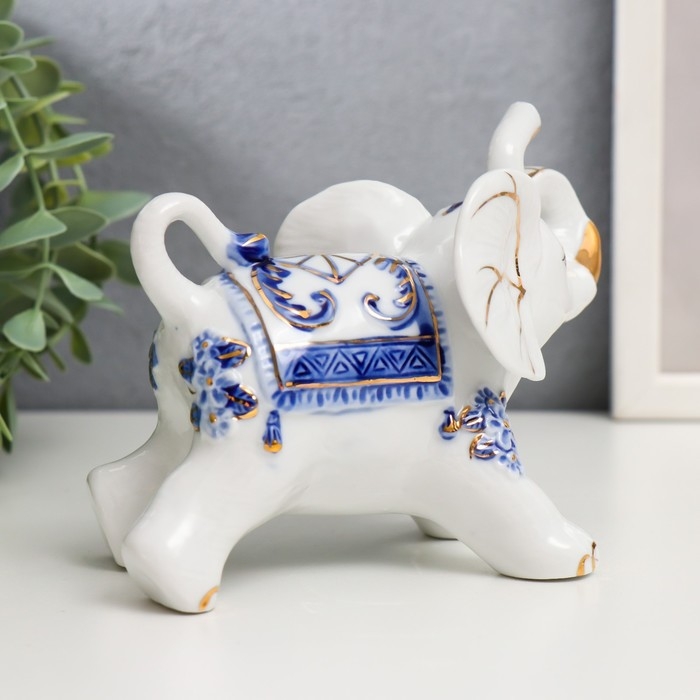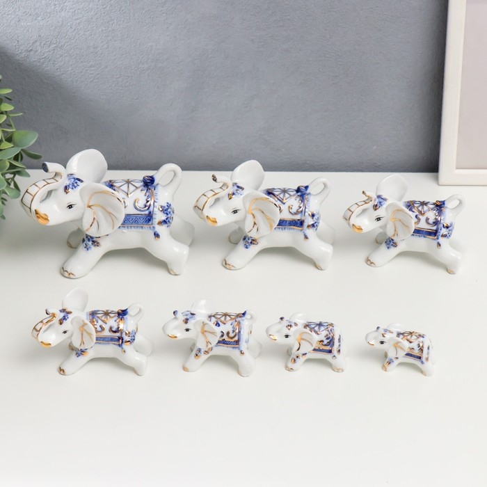Сувенир керамика "Слоны с синей росписью" набор 7 шт h= 11 см 31,5х23,5 см
